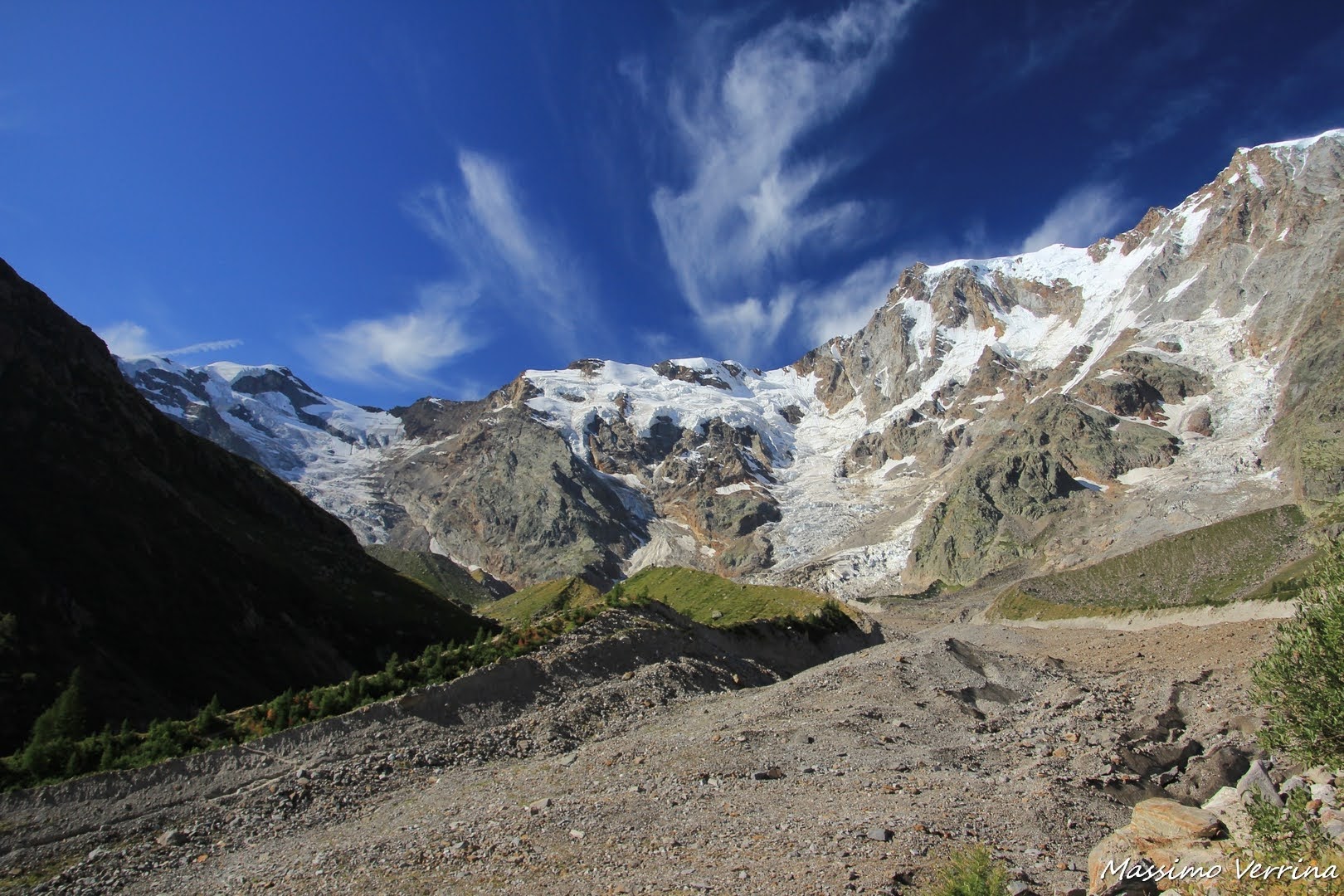 Quel letto di pietre che vedete al centro dell’immagine è il ghiacciaio, è ricoperto di pietre, ma sotto si sente scorrere l’acqua del ghiaccio che si scioglie. Il ritiro dei ghiacciai è impressionante, pensate che quella conca glaciale fino al secolo scorso era coperta da decine di metri di ghiaccio, ora è rimasto il fondo, fa impressione pensare a quanto il clima abbia mutato il paesaggio alpino…