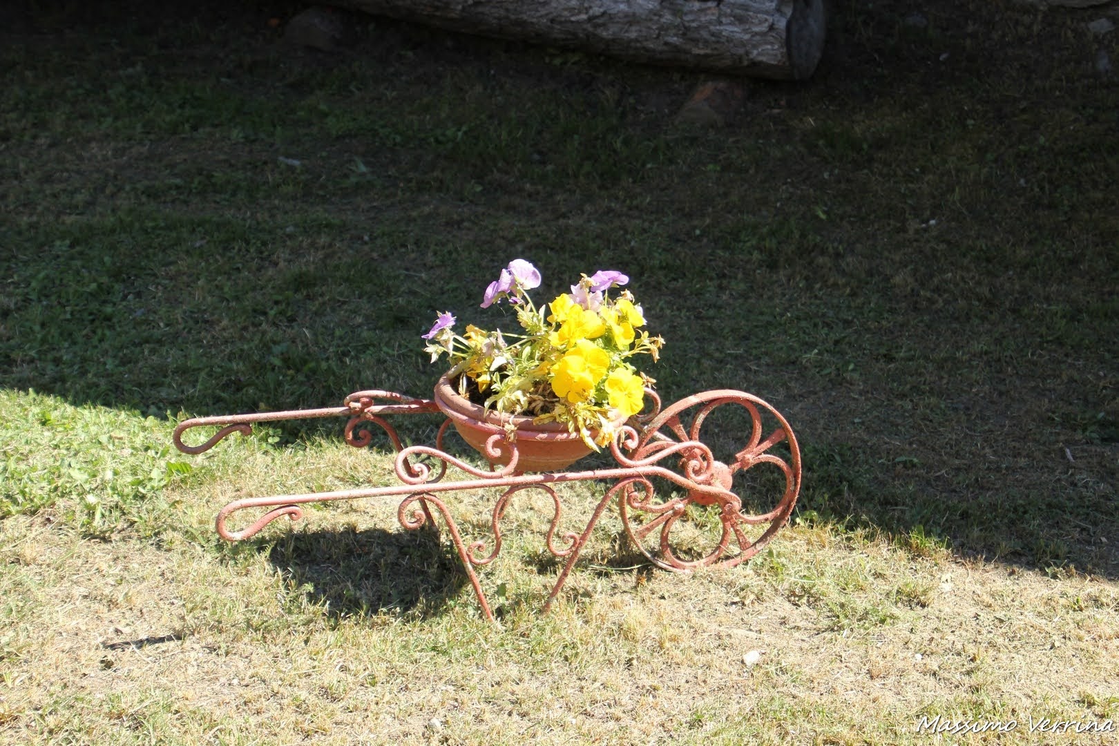Che dire poi dei piccoli particolari del giardino, come questo originale porta fiori, un piccolo tripudio di bellezza in un angolo di meraviglia, fra il silenzio dei monti, e l’atmosfera magica di quella location senza tempo…