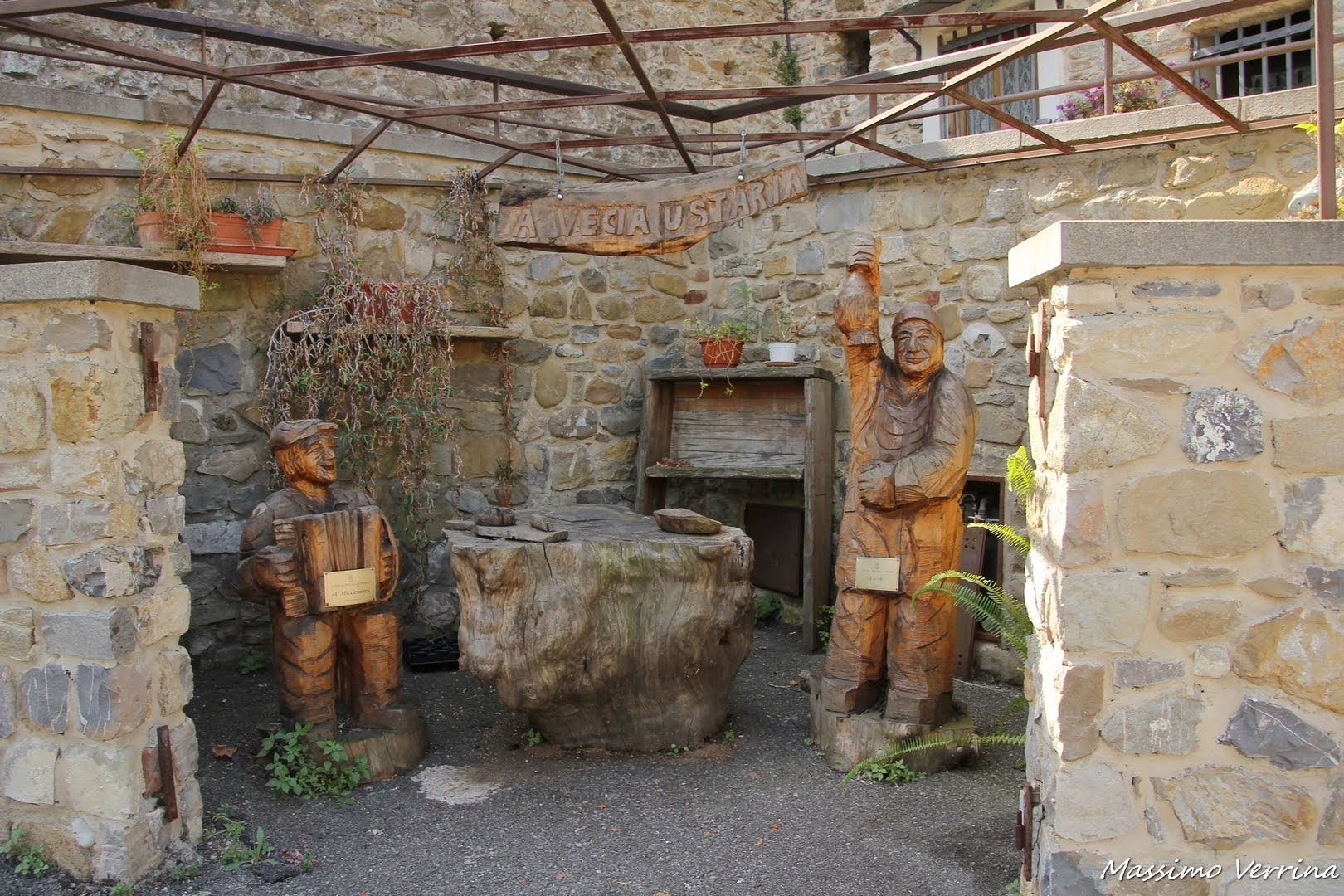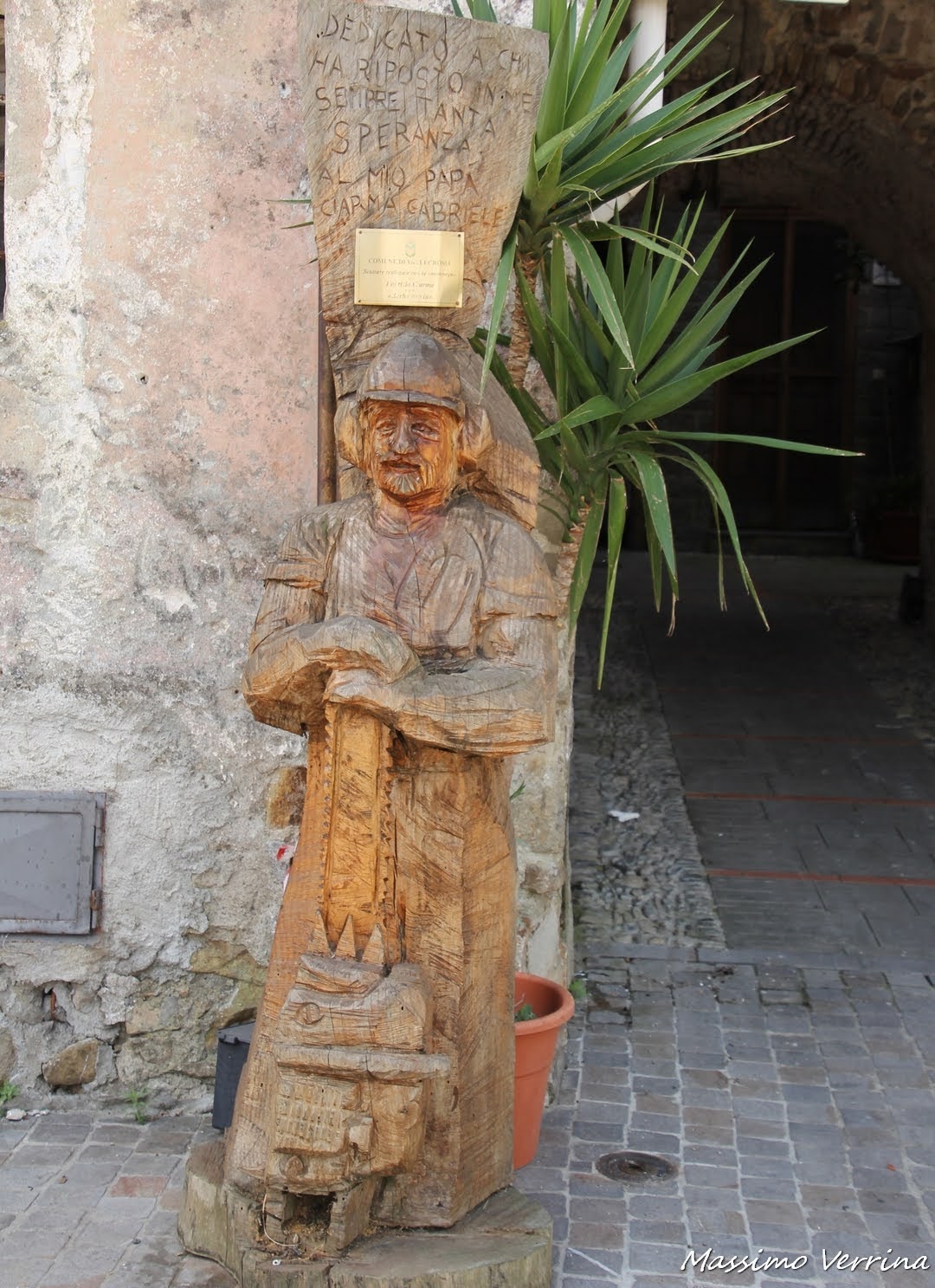 Come potete vedere non ci sono solo dipinti a rappresentare i vecchi mestieri e le vecchie botteghe, ma anche sculture in legno di pregevole bellezza. Visitare questo borgo è come trovarsi all’interno di un Presepe ad altezza naturale…