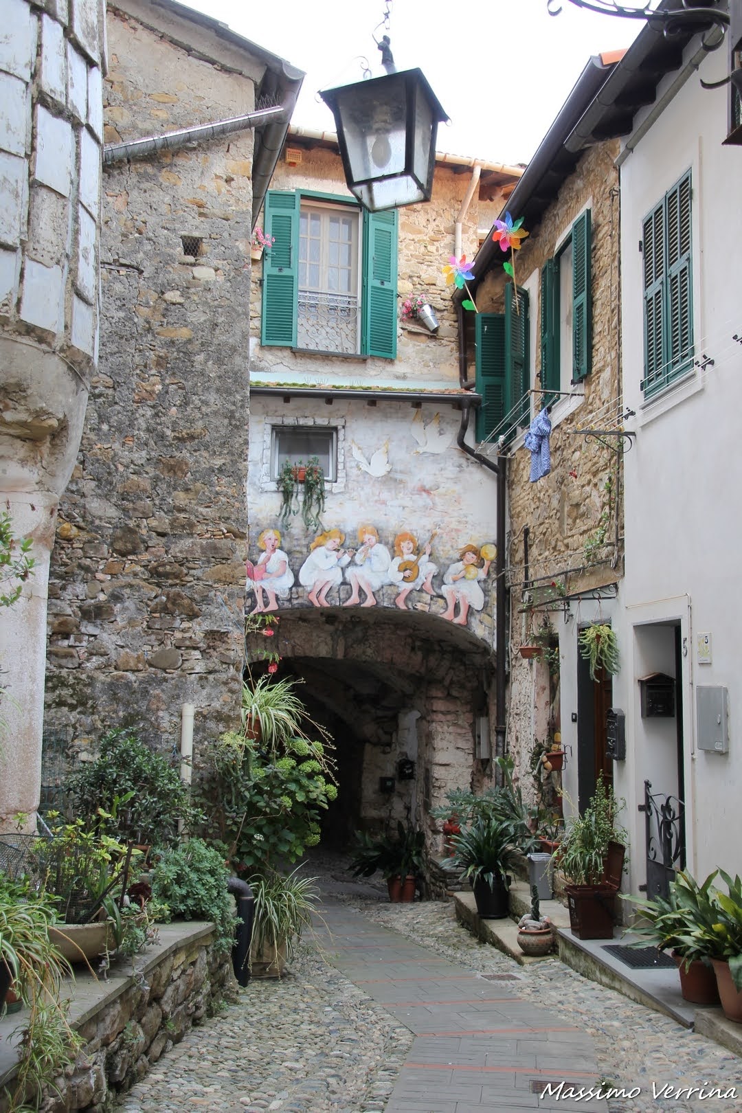 La piacevolezza di attraversare queste vie è qualcosa di unico, non solo arte, ma anche queste piante ad addobbare ogni metro di strada, e poi quei dipinti sull’arco, una delle immagini che più rappresenta l’unicità di questo borgo ligure…