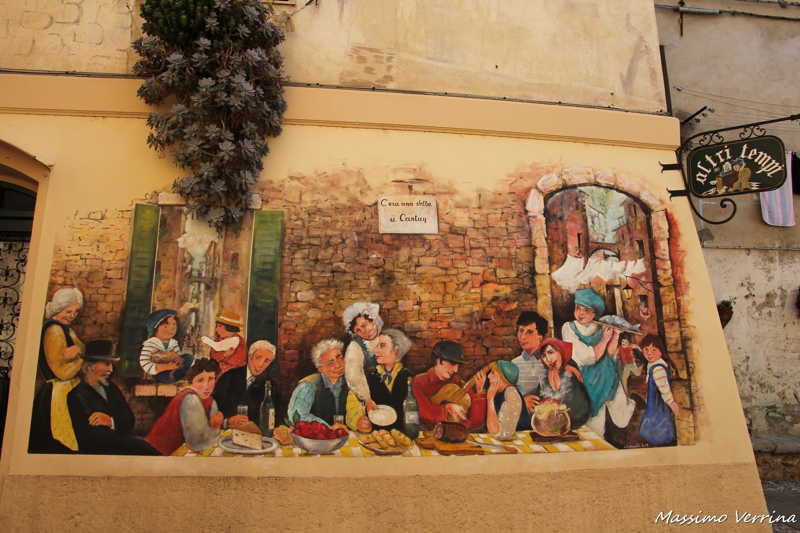 Il grande murales ci trasporta davvero in una dimensione onirica, ecco una grande famiglia riunita attorno ad un tavolo mentre si consuma un grande pasto. Sullo sfondo la bellezza dei vicoli, il sapore della storia…