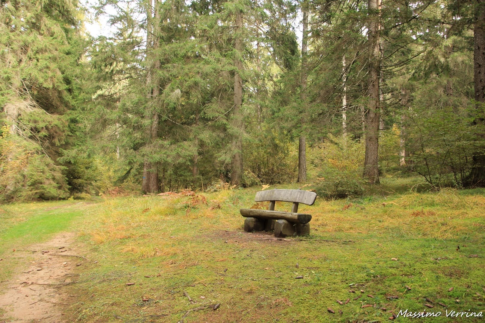 Gli alberi sempre verdi rendevano quel percorso come sospeso nel tempo, a tratti avevo l’impressione di trovarmi a camminare ancora nel letto dell’estate. Una panchina solitaria sembrava invitarmi ad una sosta, ma non avevo tempo per fermarmi, le ore del pomeriggio correvano velocemente, e le luci di ottobre presto avrebbero lasciato il posto al buio della vicina notte….