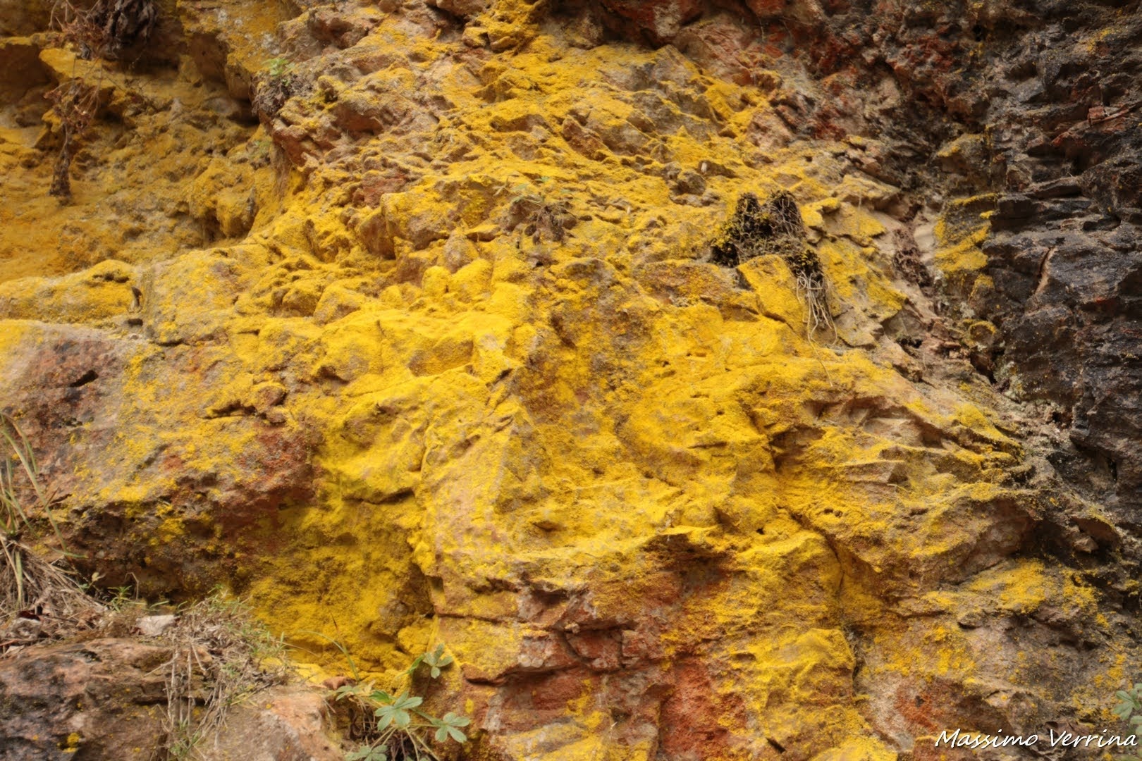 Giunto a poche centinaia di metri dal Santuario rimango colpito da alcune rocce coloratissime! Ce n’è una gialla che è pazzesca, il suo colore è così intenso che sembra incredibile possa esistere…
