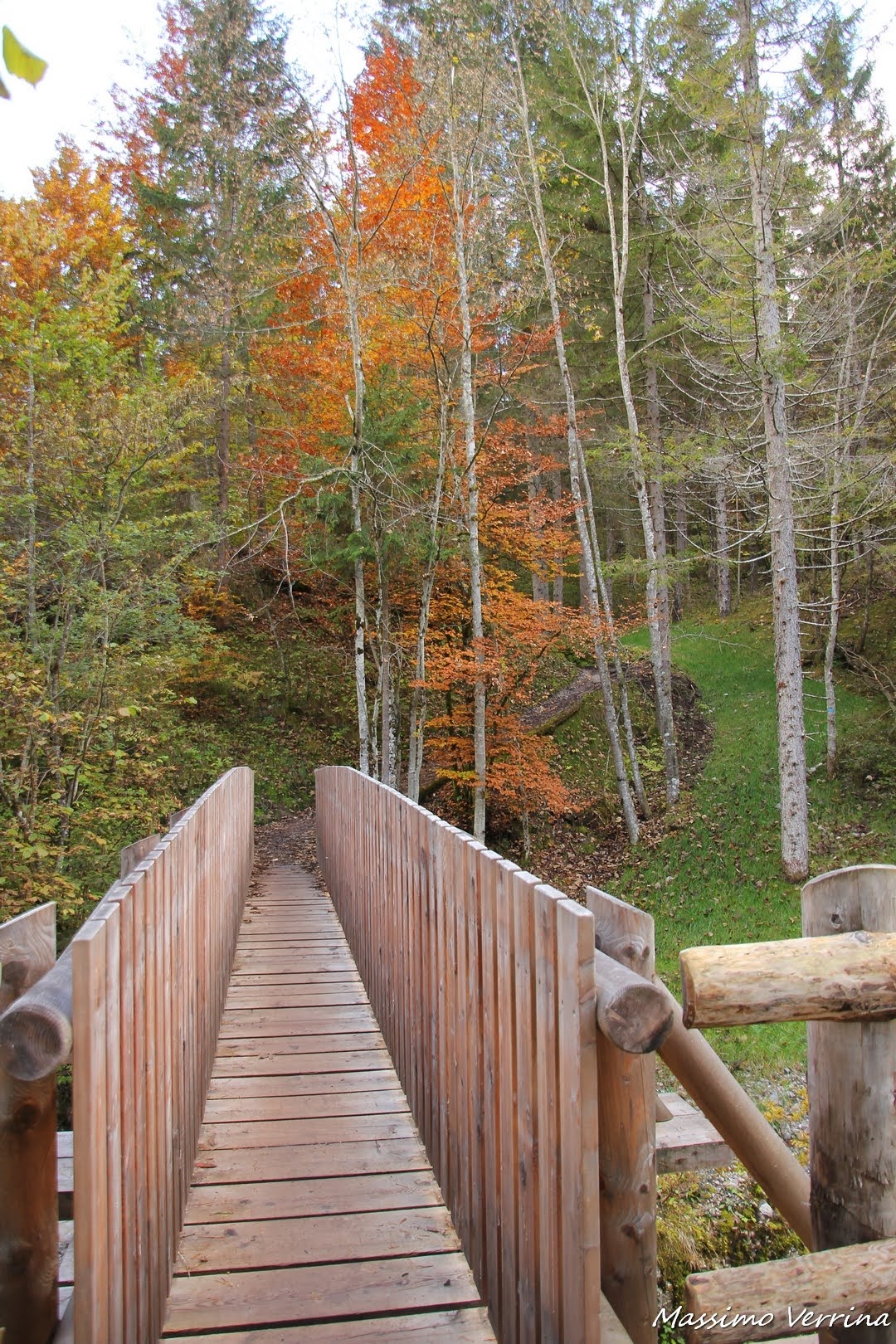 Un bel ponticello in legno si armonizza perfettamente con le tinte calde dell’autunno, quel percorso era davvero ricco di colori e sensazioni cangianti, passo dopo passo…