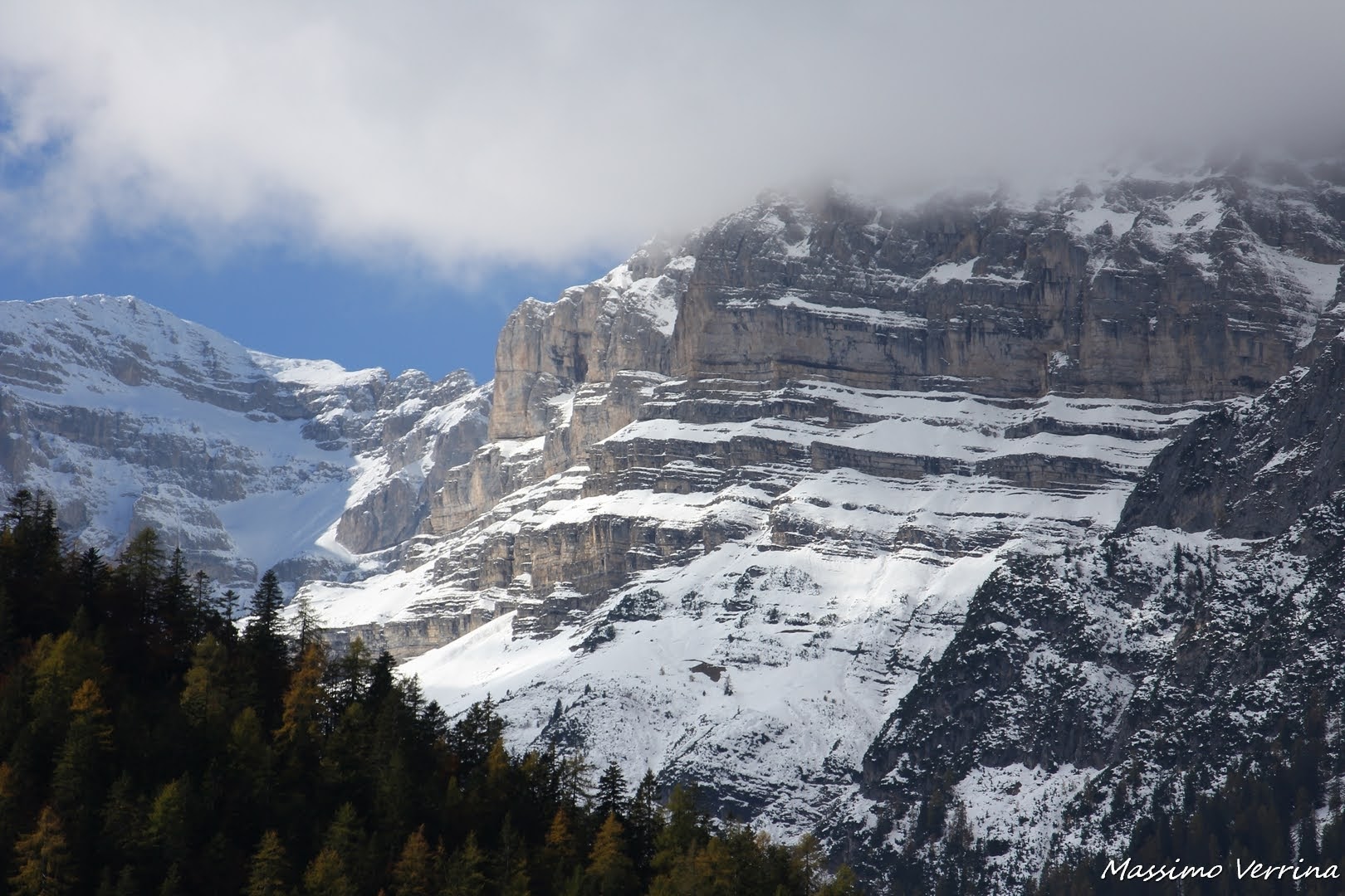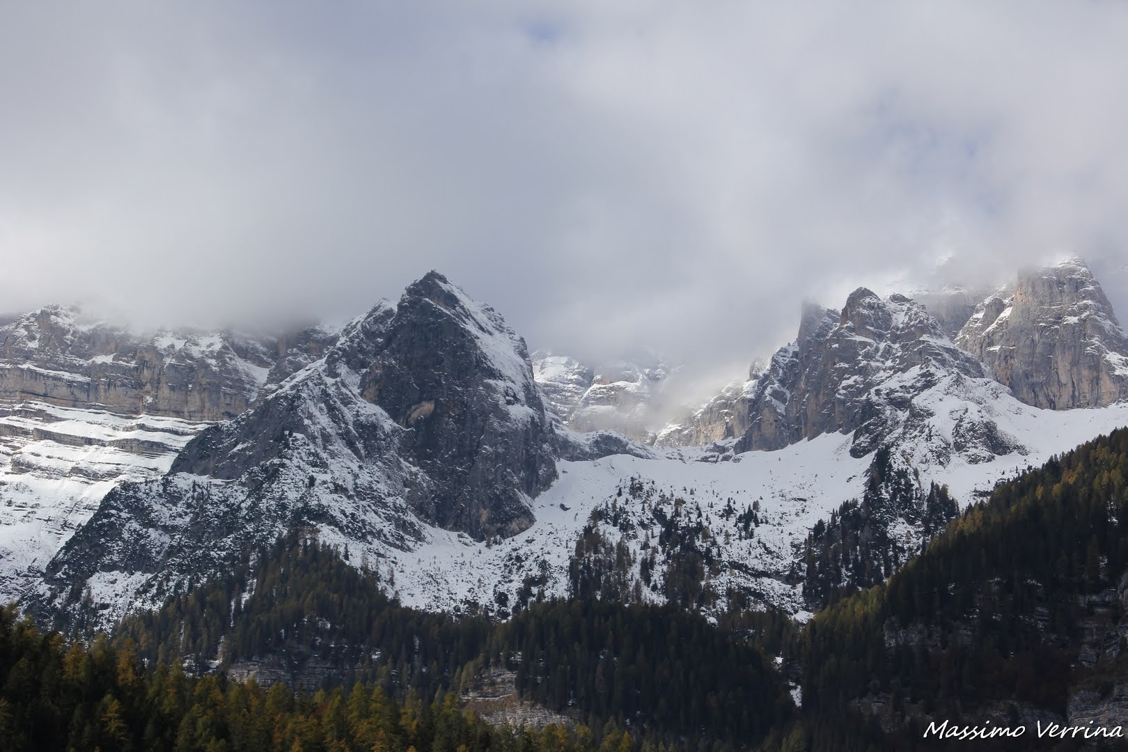 Basta spostare lo sguardo verso l’alto ed ecco che il paesaggio cambia di nuovo, il mix delle due stagioni, autunno e inverno, è li davanti a me, pronto a scrivere pagine d’incanto sulle tele dei miei occhi…