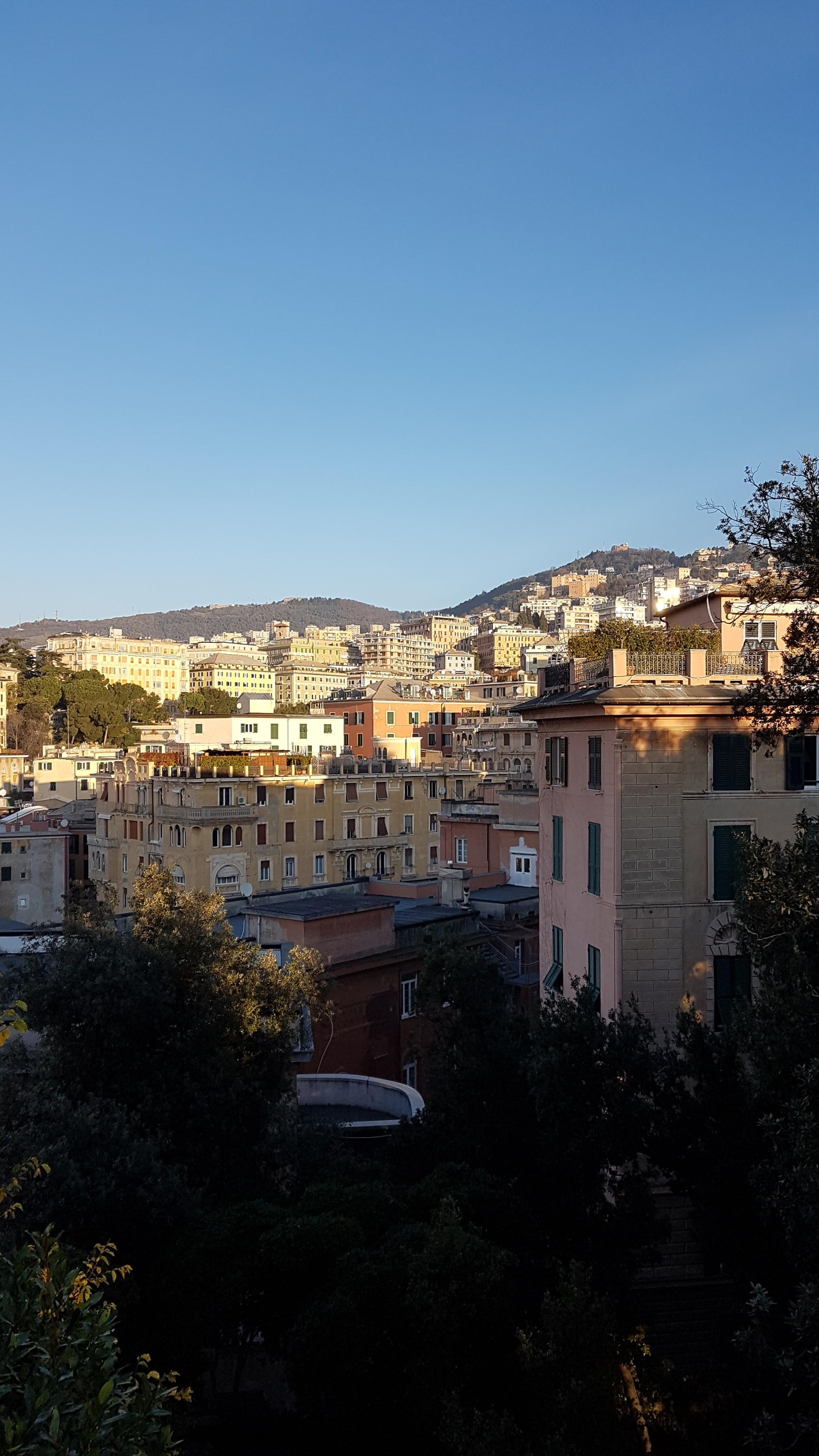 Salgo nel suo punto più alto, il panorama della città verso le colline alle sue spalle ci appare in tutta la sua meraviglia. Su quelle alture potete notare i forti di Genova, lassù c’è il Parco del Peralto, da dove prossimamente su questo blog vi farò ammirare un bellissimo tramonto sulla città….