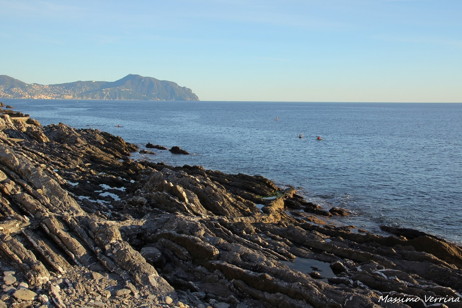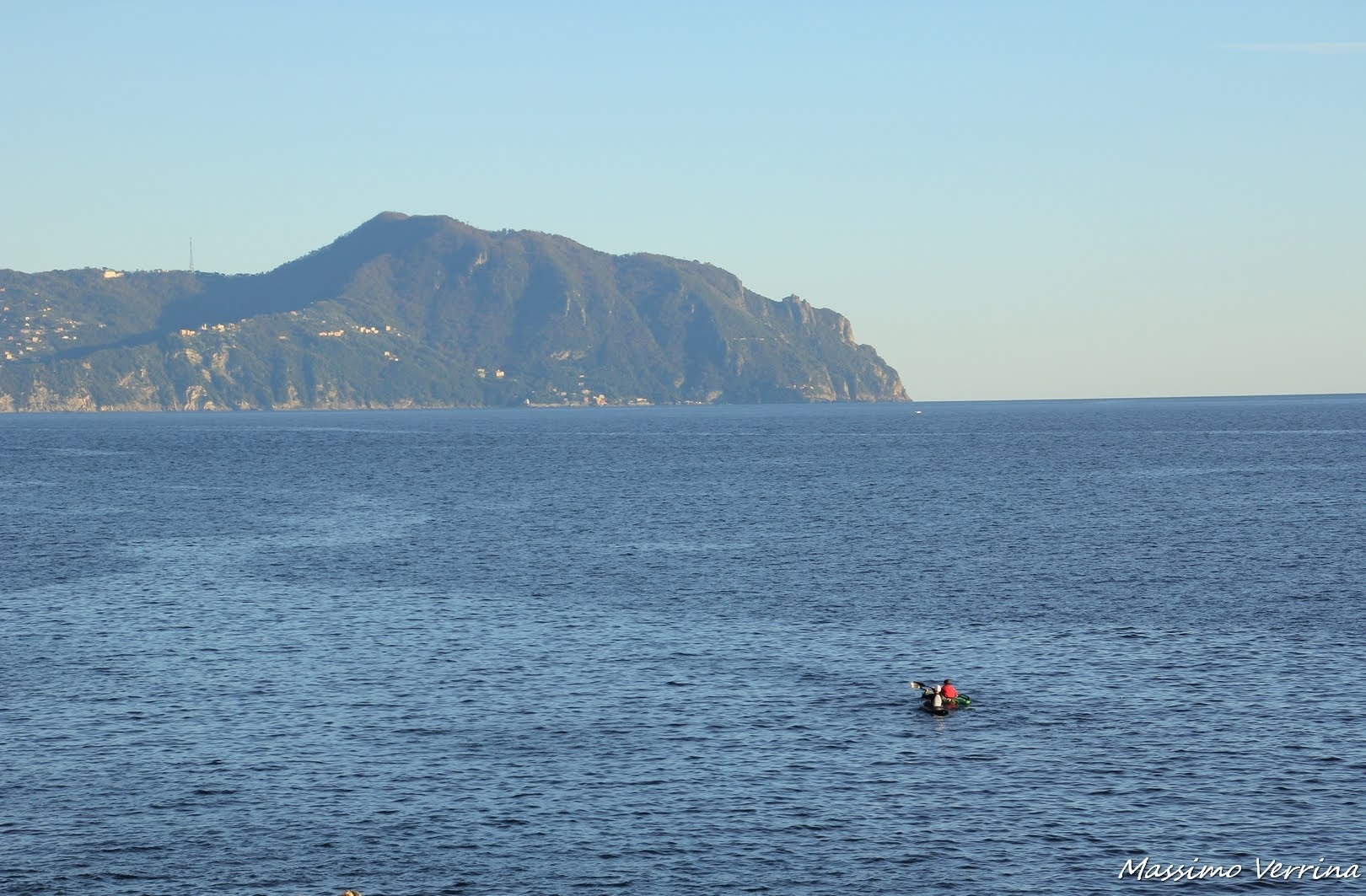 Il promontorio di Portofino sullo sfondo è una cornice bellissima per chi passeggia lungo questa spettacolare scenografia. Ho colto anche due canoisti, per evidenziare l’immensità del mare, la libertà della vita all’aria aperta, e la bellezza della Riviera ligure…