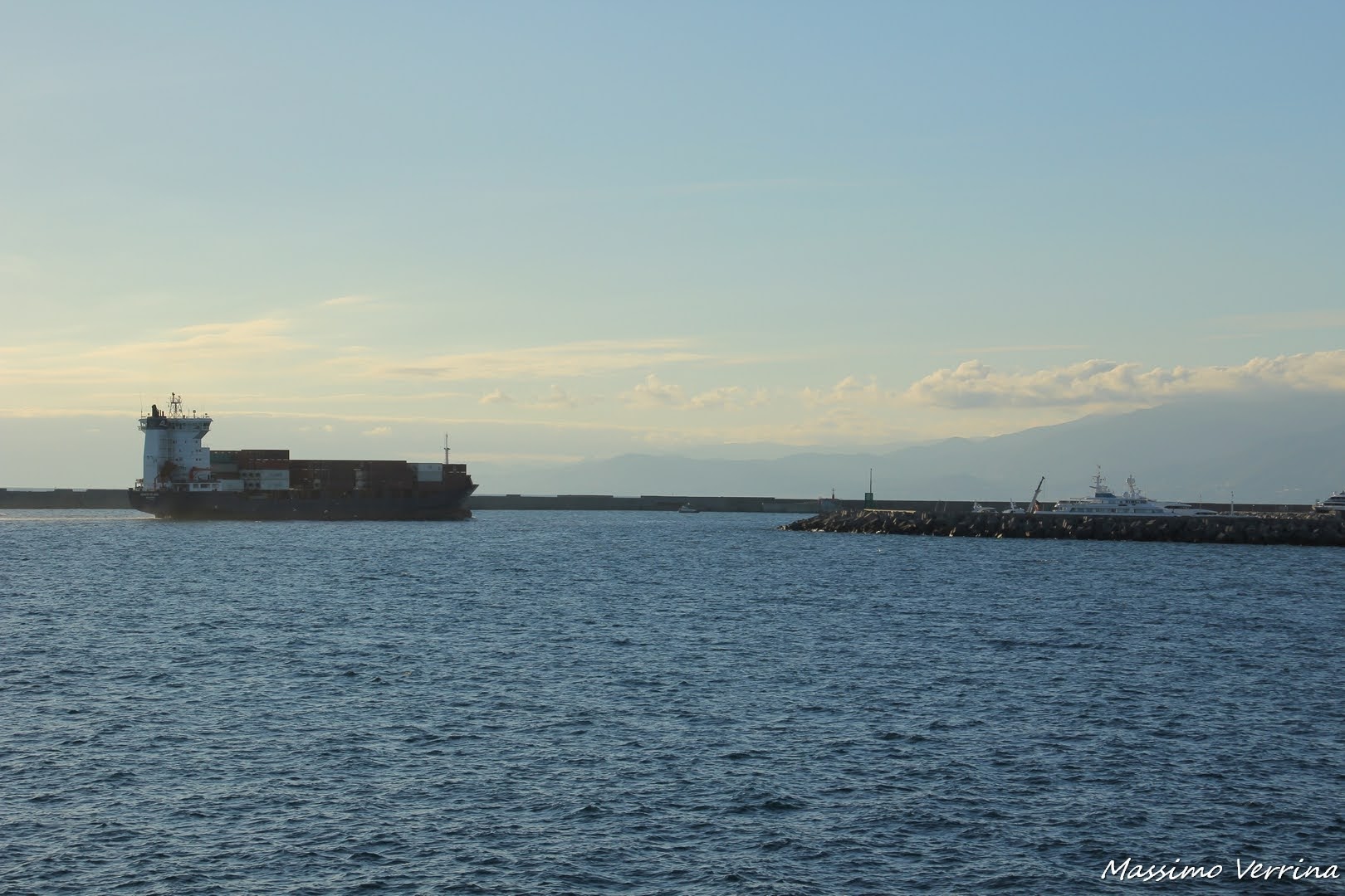 Osservando verso sud ovest ecco l’ingresso del Porto di Genova, protetto dalla diga foranea verso sud, ho colto il momento di una nave che entrava giusto per rendere viva l’immagine….