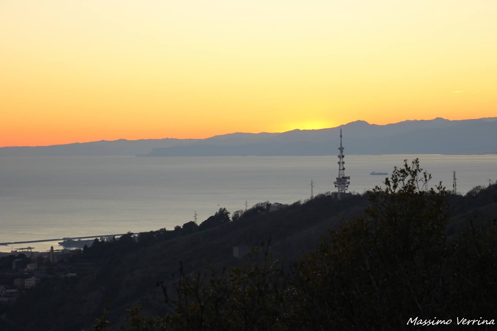 Sono in parte avvolto dalla vegetazione spoglia dell’inverno, il sole saluta il giorno con l’ultimo inchino, altri ponti radio fanno da cornice alla Riviera di Ponente che da qua si vede per intero. Raffiche di vento sempre più tese annunciano il freddo della vicina notte…