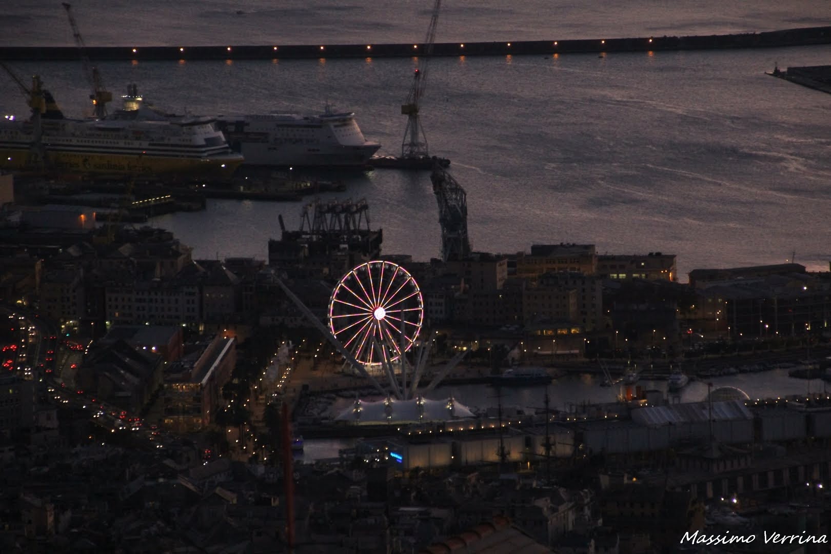 Ora spostiamo l’attenzione sul Porto Antico, la zona turistica più famosa di Genova, si nota il Bigo, e la grande ruota panoramica che ogni anno posizionano lì per offrire ai turisti una bellissima prospettiva aerea del porto. Io pur essendo di Genova ogni anno ci salgo, faccio un giro come un bambino, col sorriso sulle labbra e l’emozione delle giostre, l’anno scorso avevo fatto anche un filmato col telefono, proprio come i turisti…