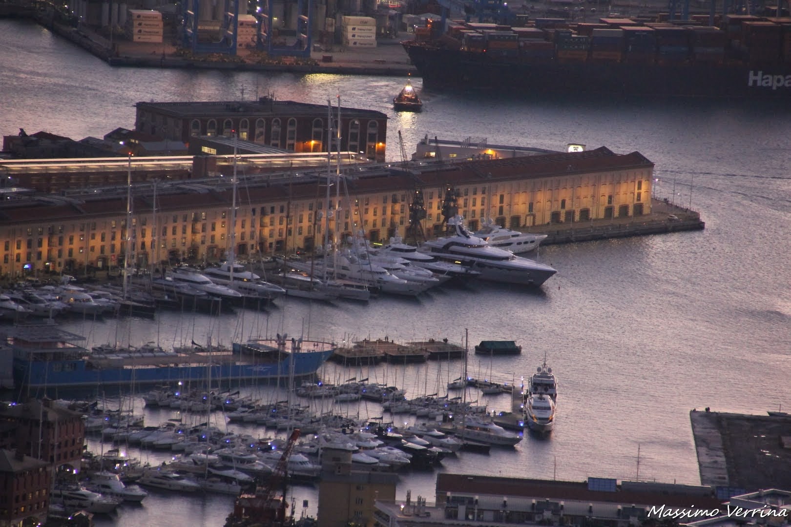 In fondo se ci pensate siamo tutti turisti delle nostre città. L’emozione a mio avviso non dovrebbe mai mancarci, ci arricchisce l’anima e ci fa sembrare più bella ogni cosa che vediamo o facciamo. Nella prossima immagine ecco le grandi gru del porto, i piazzali adibiti ai container, e i rimorchiatori che gestiscono il traffico portuale…