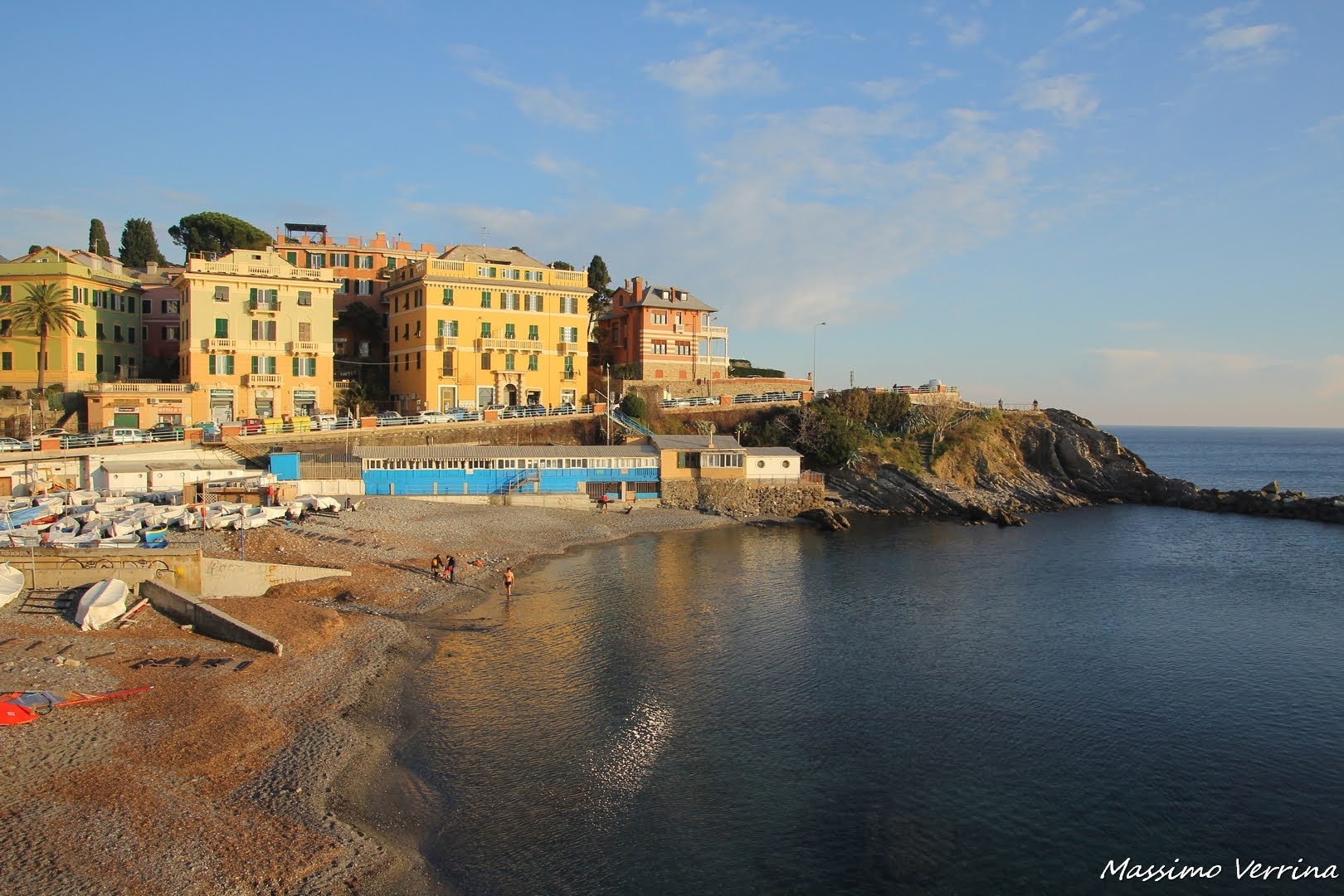 Anche in questo caso potete apprezzare degli stabilimenti balneari, e sullo sfondo sempre l’imponenza del Promontorio del monte di Portofino, visibile da ogni punto di Genova…