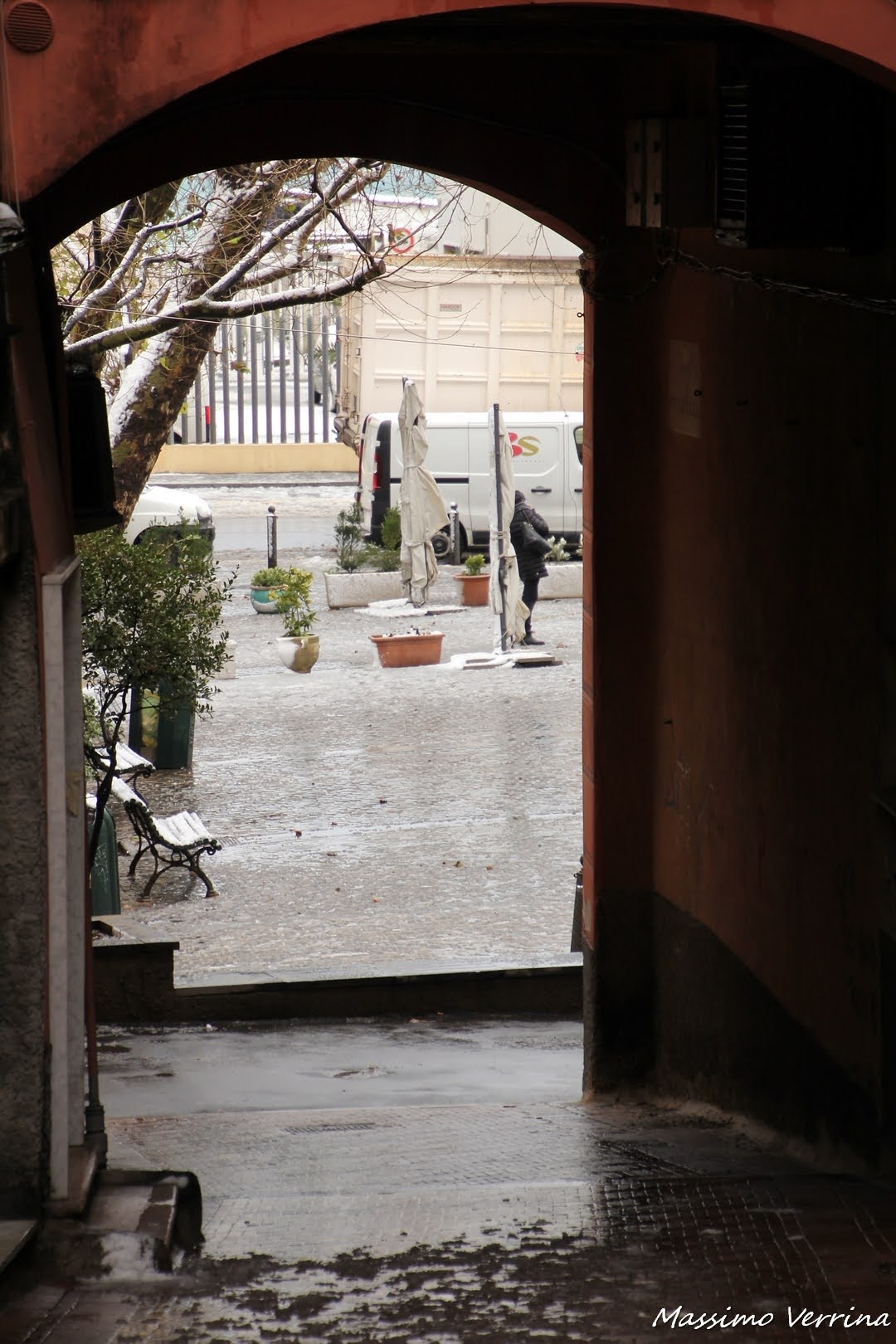 Percorro le contrade del centro storico della mia cittadina, hanno buttato il sale, in alcuni punti la neve si sta già sciogliendo, in altri è ghiacciata, bisogna fare attenzione a non cadere, procedo lentamente, assaporando l’inconsueto paesaggio…