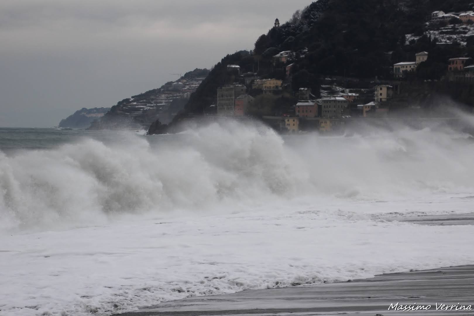 La tempesta di vento unita alla mareggiata assumeva connotati da mare nordico, sembrava di essere sulle coste della Norvegia in quel giorno, una situazione certo non consona al clima solitamente mite della Liguria. Ma quest’anno l’inverno è durissimo anche da queste parti….