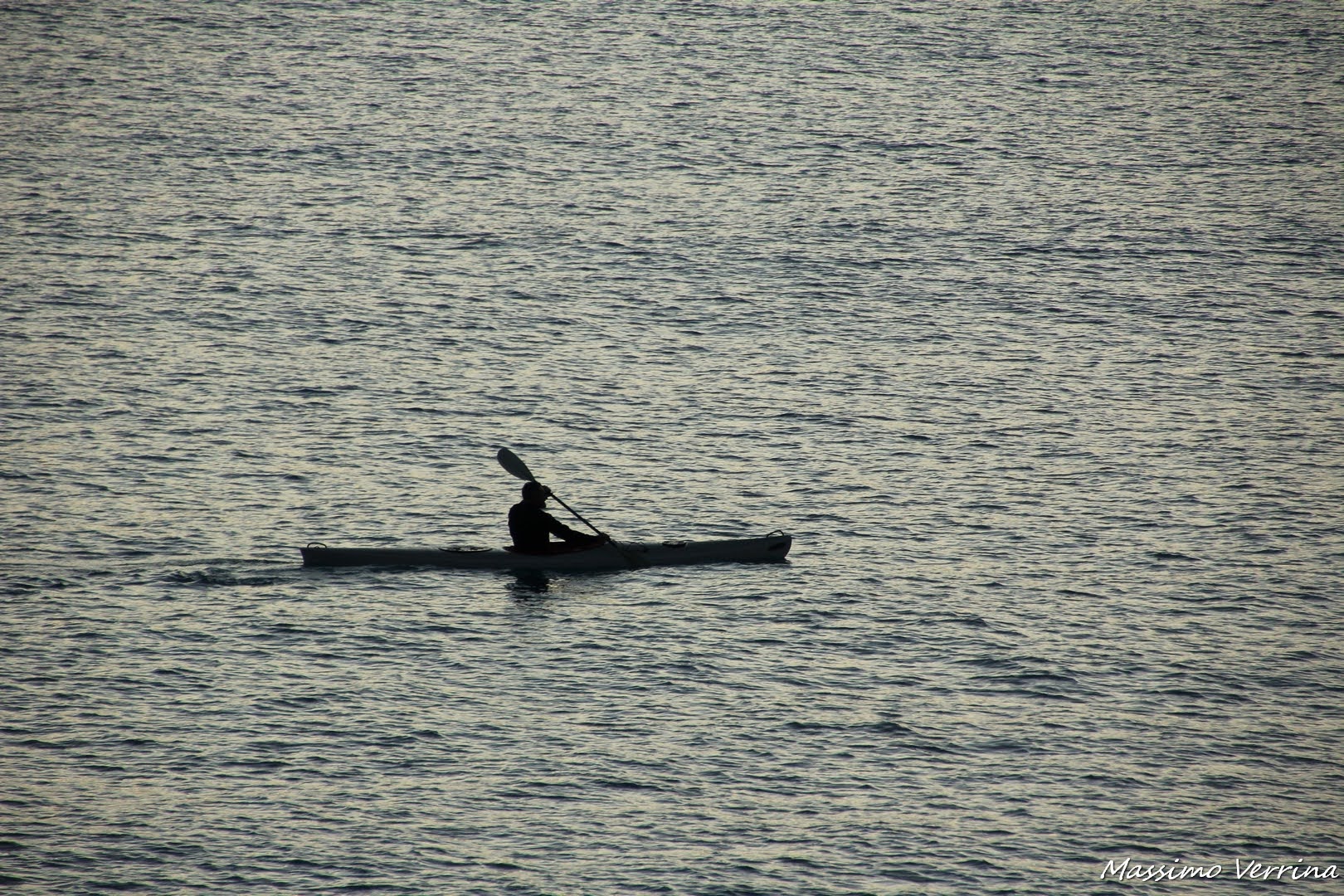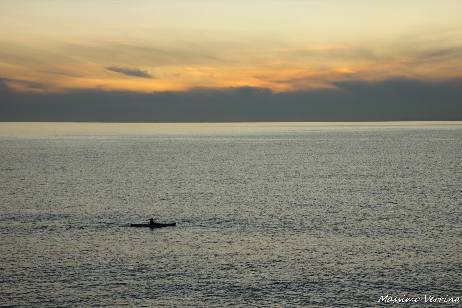 Mi fermo un attimo lungo la passeggiata per assaporare le ultime luci, mi appoggio al muretto e osservo una piccola canoa che viaggia verso ovest, costeggiando la riva, probabilmente stava andando verso il porticciolo per concludere il suo viaggio…