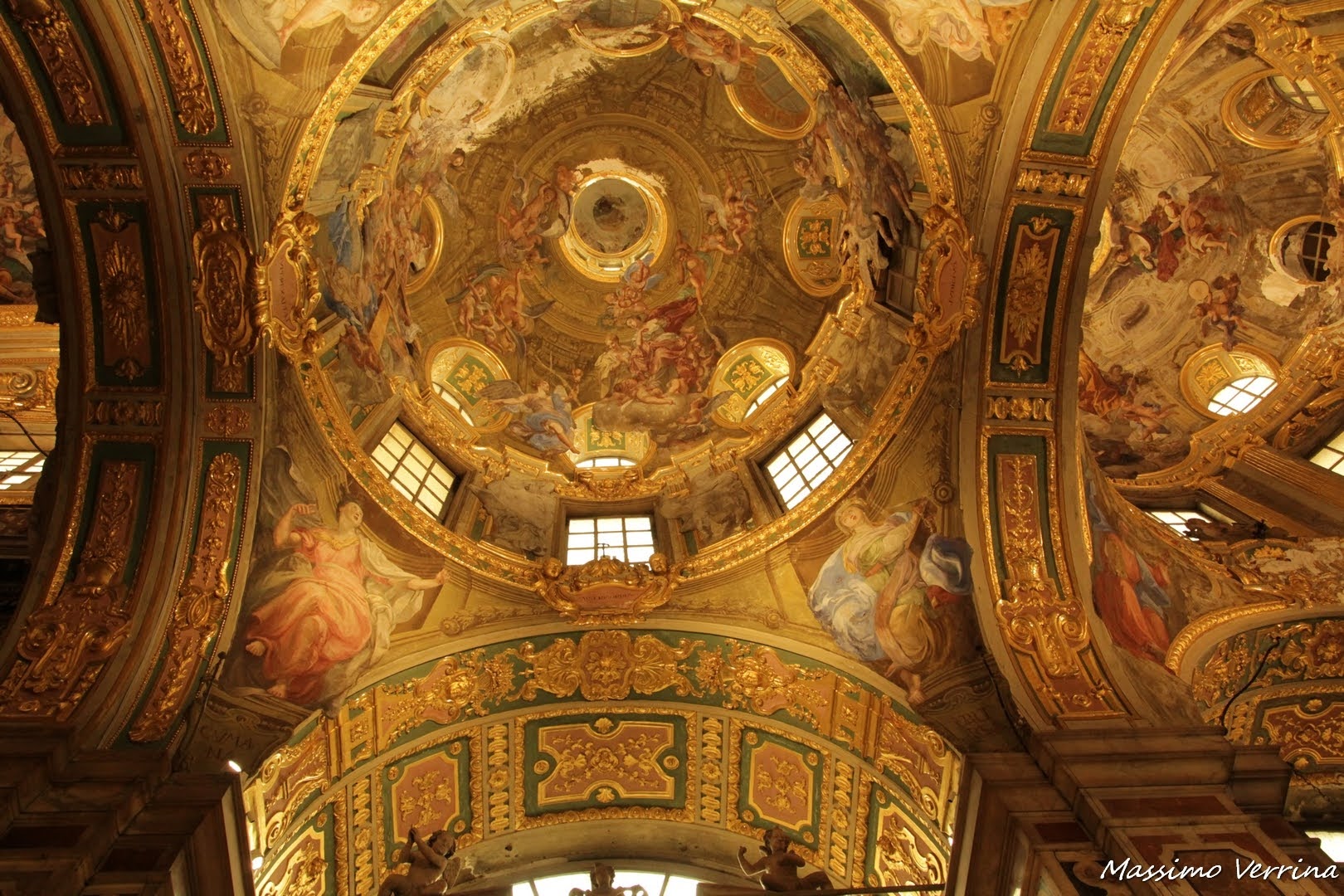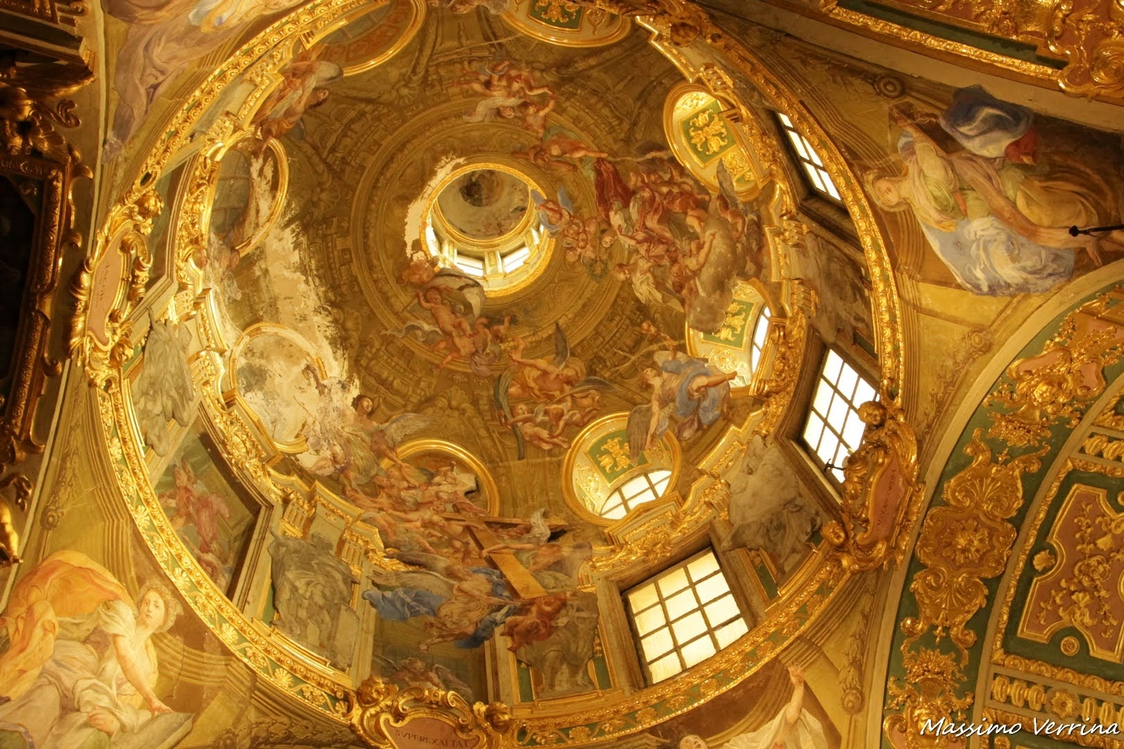 Ora v’invito ad alzare lo sguardo al cielo, ed eccoci proiettati in un capolavoro unico!! Osservate la perfetta specularità di queste due cupole, la magnificenza dei decori, degli affreschi. Si rimane davvero a bocca aperta col naso all’insù di fronte a questo spettacolo!