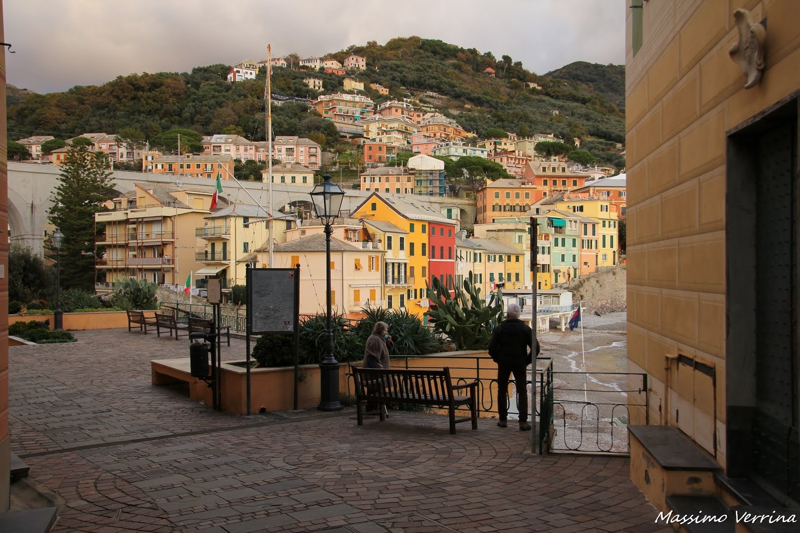 Il piccolo molo posto a protezione del porticciolo sembra puntare verso il Promontorio, i colori strani di quella giornata rendevano Bogliasco ancora più ricca nella sua immobile presenza. Il mare assumeva gradazioni cangianti, un po’ come certi occhi, che una volta che li vedi ti rimangono impressi, dei piccoli diademi incastonati in sguardi di bellezza….