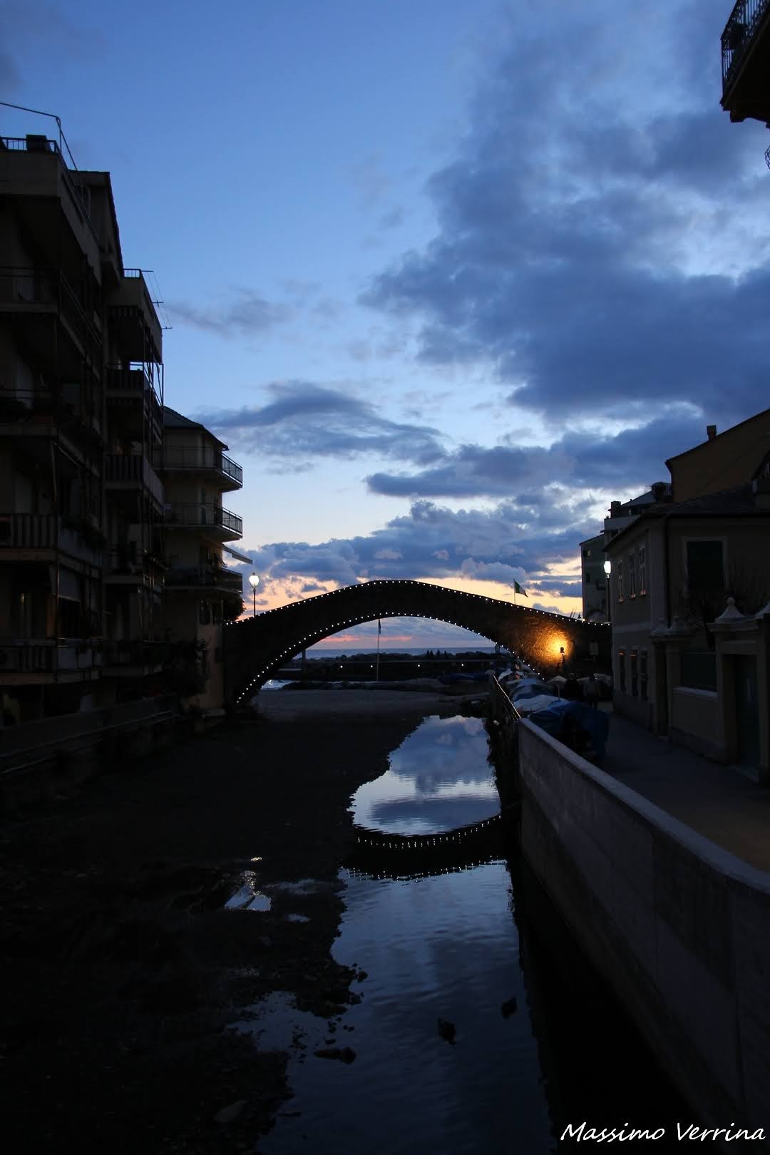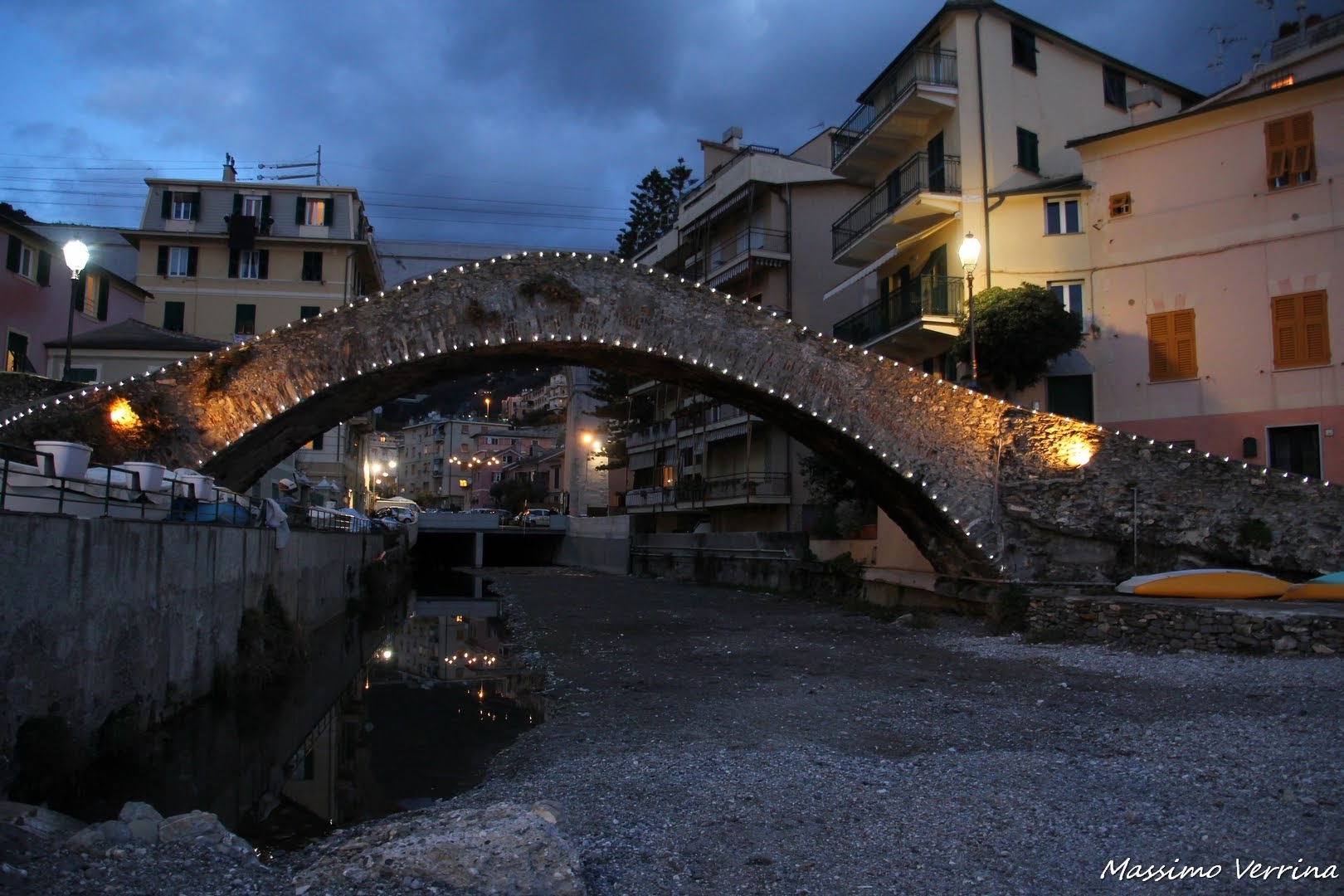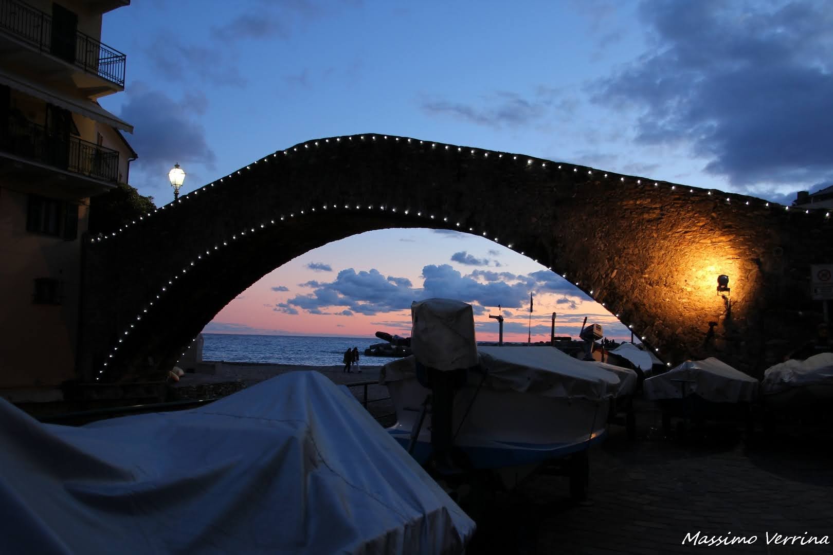 E’ quasi notte completa quando raggiungo un altro punto particolare di Bogliasco, ovvero il suo ponte medioevale affacciato sulla spiaggia. Eravamo alla fine dell’anno, le luci natalizie donavano ulteriore bellezza a questo bellissimo scorcio del borgo…