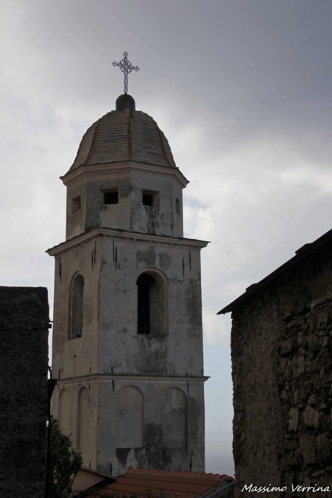 Il temporale si avvicinava sempre più, un tuono potente scuote l’aria, le vibrazioni si sentivano in tutto il corpo. Osservo il campanile di una chiesa che vedremo più avanti, sullo sfondo il cielo cupo del temporale contribuisce a creare una sensazione nuova allo stesso borgo…