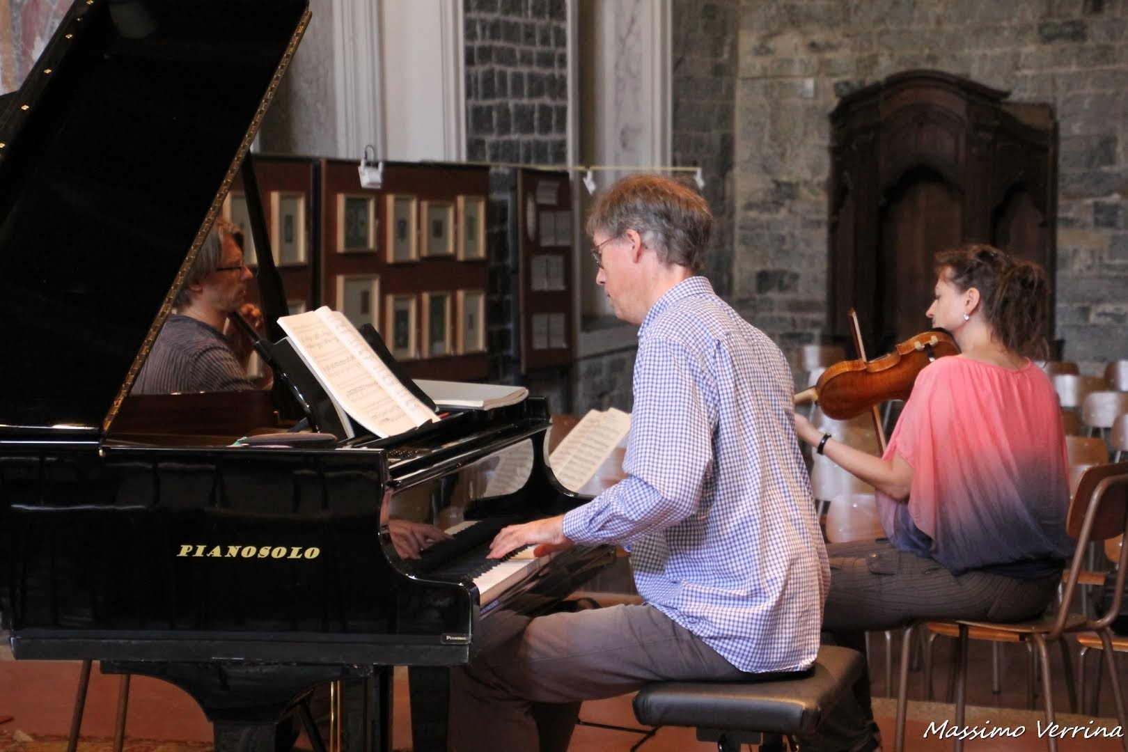 Probabilmente stavano facendo delle prove per qualche concerto che avrebbero tenuto in una di quelle giornate, cammino in punta di piedi per non disturbare e ruoto attorno a loro per cogliere i movimenti delle mani sulla tastiera e il movimento sinuoso del violino. I suoni penetrano in me, sono una cassa armonica di emozioni mentre catturo attimi per trasportarne l’essenza…