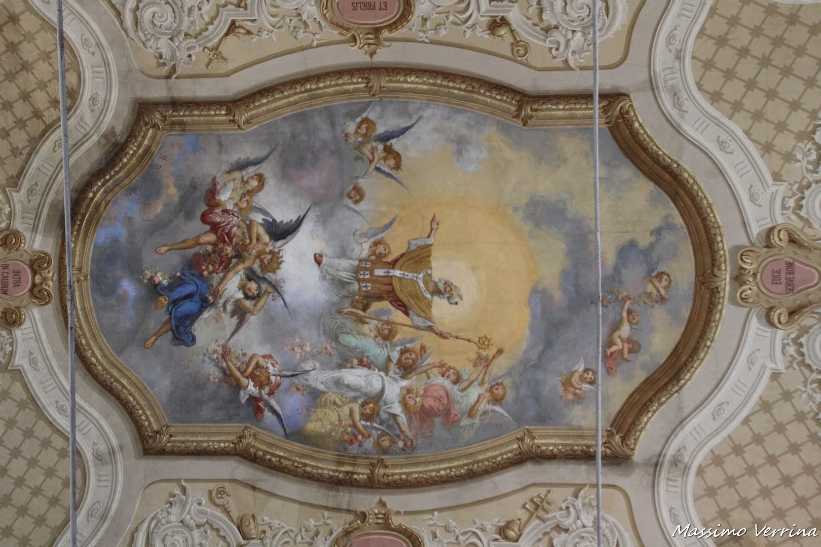 Osservate la maestosità del soffitto, quei colori così intensi che sembrano far emergere le opere dalle stesse volte, e poi tutti quei decori artistici sulle colonne laterali, un vero colpo d’occhio spettacolare!..