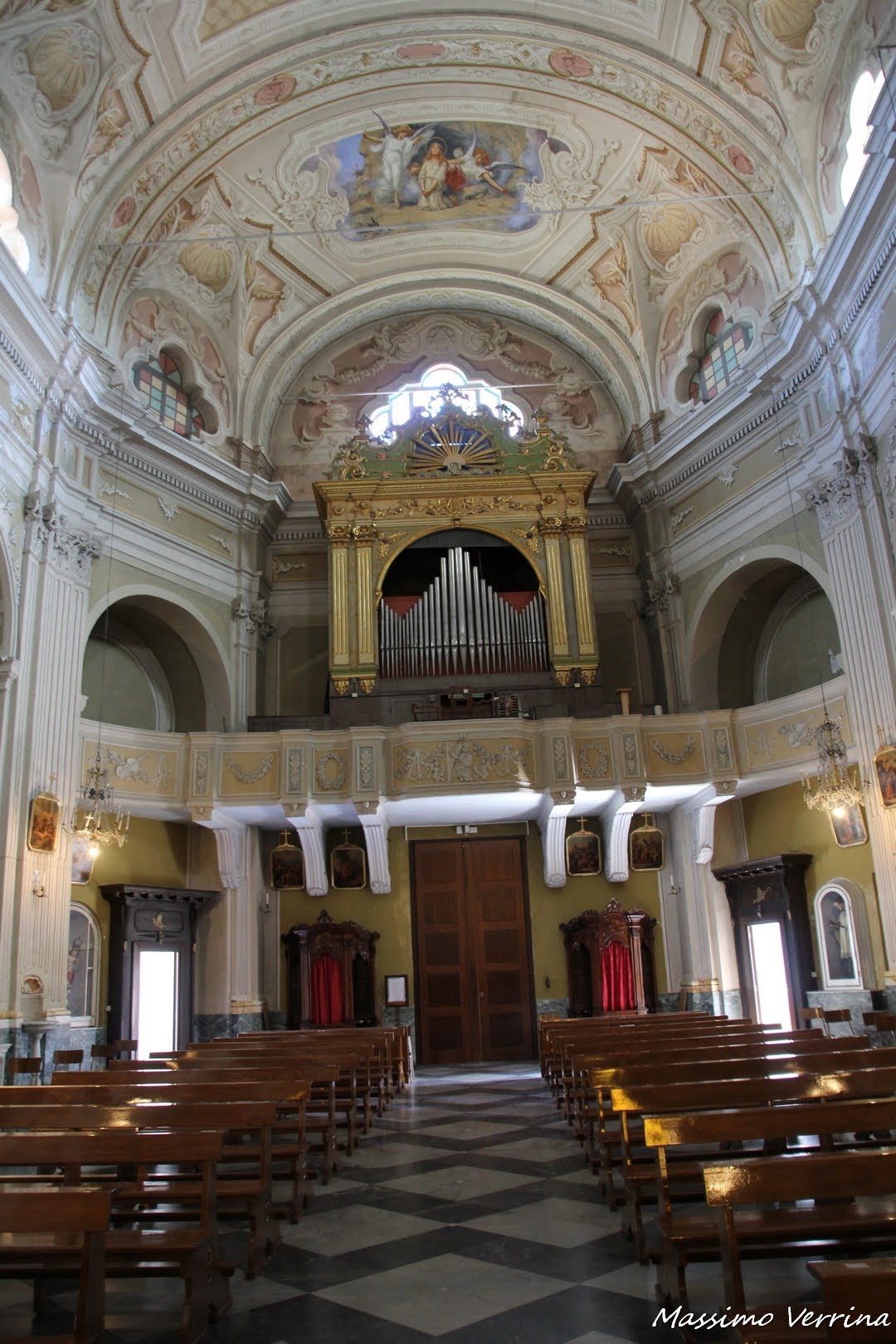 E per finire dall’altare osserviamo la bellezza dell’organo posto sopra all’ingresso, e l’ulteriore incanto delle volte sopra all’organo stesso. Anche in questo caso la luce esterna contribuisce a donare spettacolarità a tutto l’insieme…