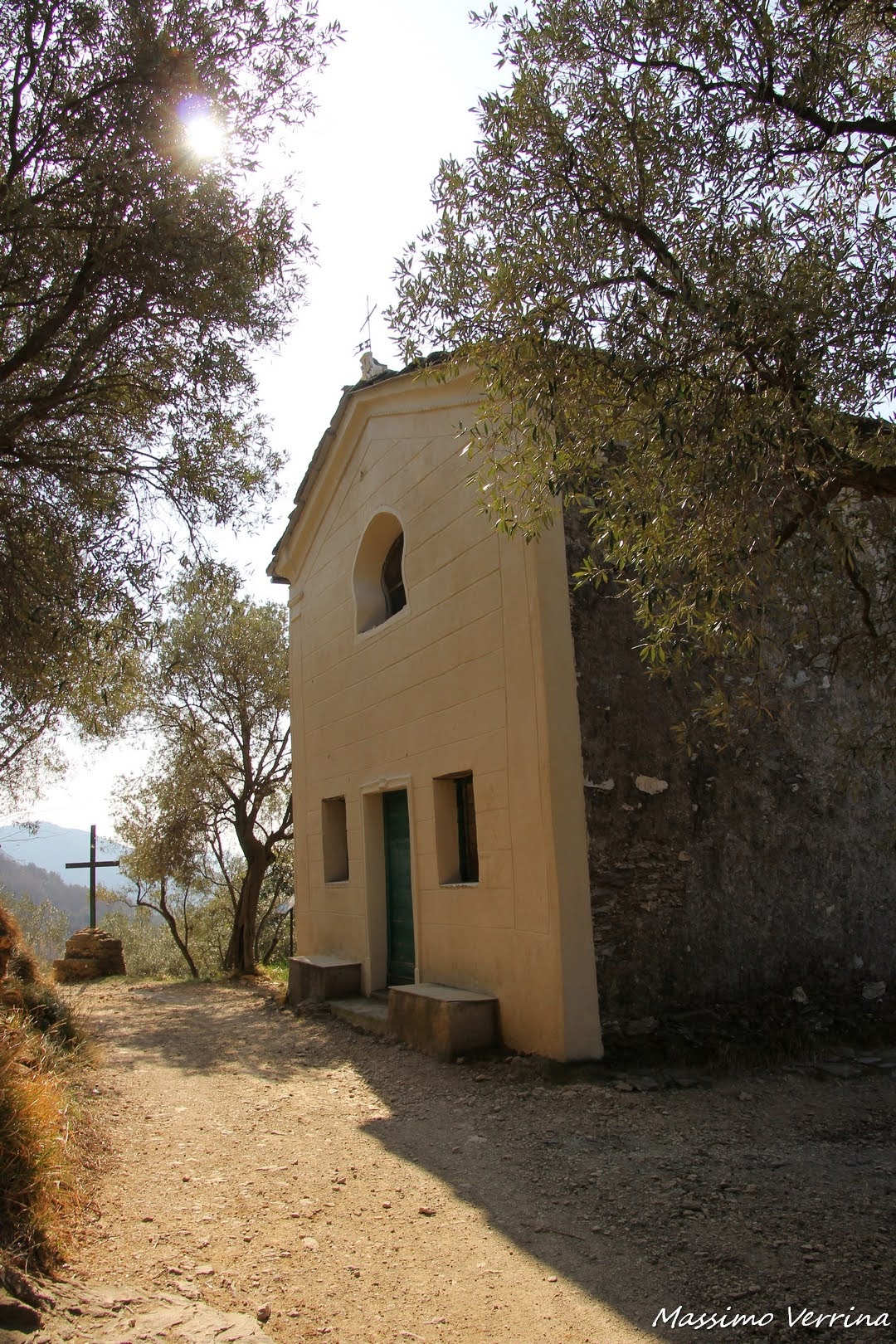 Prima che il sentiero prosegua nella campagna, fino a scendere verso Zuccarello, ecco una piccolissima chiesetta molto suggestiva. Un raggio di sole filtrava tra gli ulivi, e rendeva questo ambiente ancora più incantevole. In questa domenica delle Palme questo scatto calza giusto a pennello, infatti ho calcolato di postare questi punto proprio oggi…..😉
