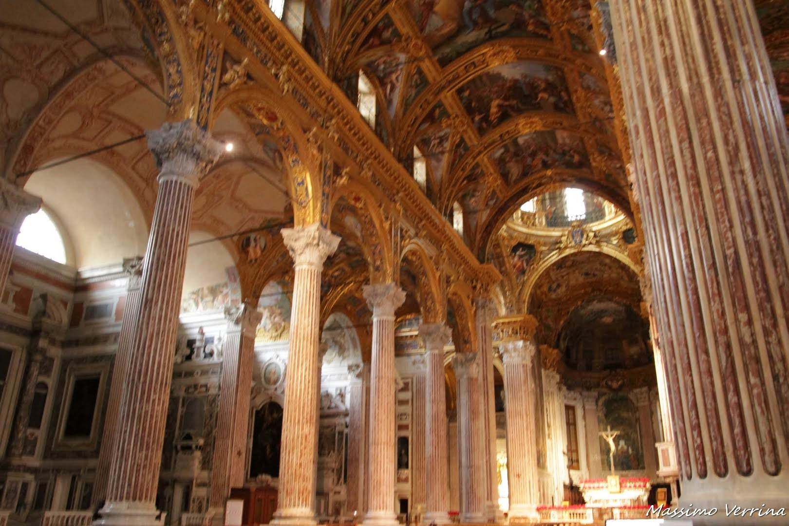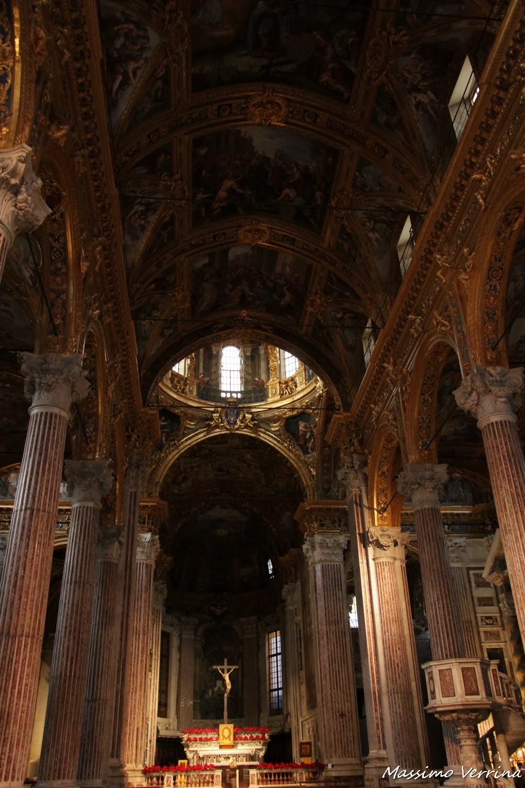 Mi sposto un po’ più verso il centro per quest’ultima immagine che riepiloga un po’ tutta la magnificenza che avete visto attraverso i vari particolari. In futuro hanno detto che metteranno un timer a pagamento per illuminare la chiesa, un po’ come capita con i presepi, questa sarà di sicuro una bella opportunità per poterla vedere al meglio, senza dover aspettare una Messa. Per ora ve l’ho mostrata come meglio ho potuto…