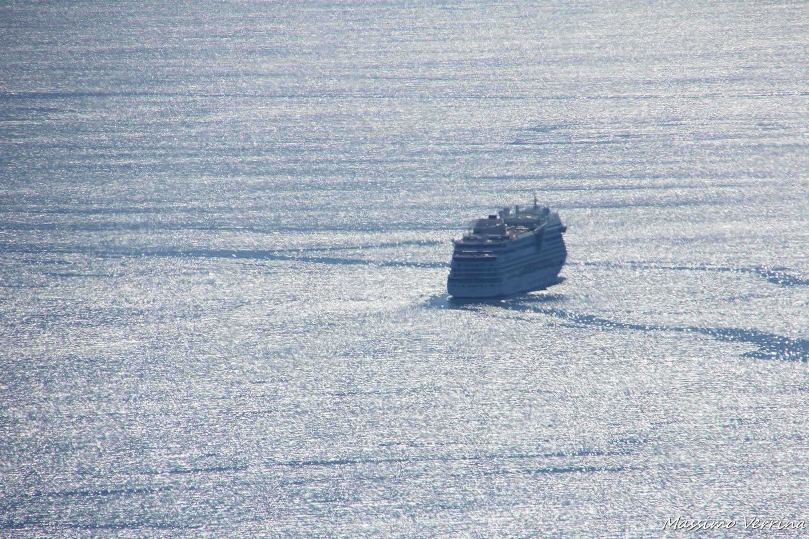 Sul mare davanti a questo tratto di costa ecco una grande nave da crociera, sembra quasi sospesa su un tappeto d’argento, l’effetto ottico che sono riuscito ad ottenere regala senza dubbio un colpo d’occhio fantastico, non trovate?…