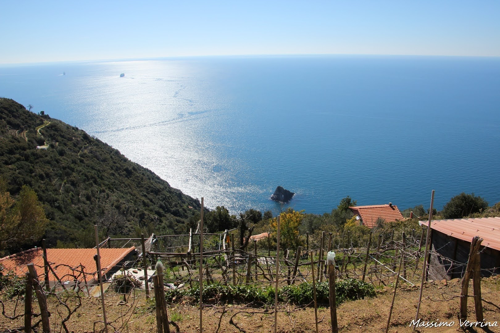 Attraverso altri terreni coltivati, qua l’agricoltura costa moltissima fatica, immaginate solo salire e scendere questi scoscesi crinali. Nel Parco delle 5 Terre, che è vicinissimo a questa zona, a pochi km da qui, hanno creato delle cremagliere per trasportare l’uva in tempo di vendemmia, e anche per lavorare nei campi. I muretti a secco poi qua sono una vera istituzione, il terreno stesso ha bisogno di questi manufatti umani per mantenersi integro e non franare a valle…