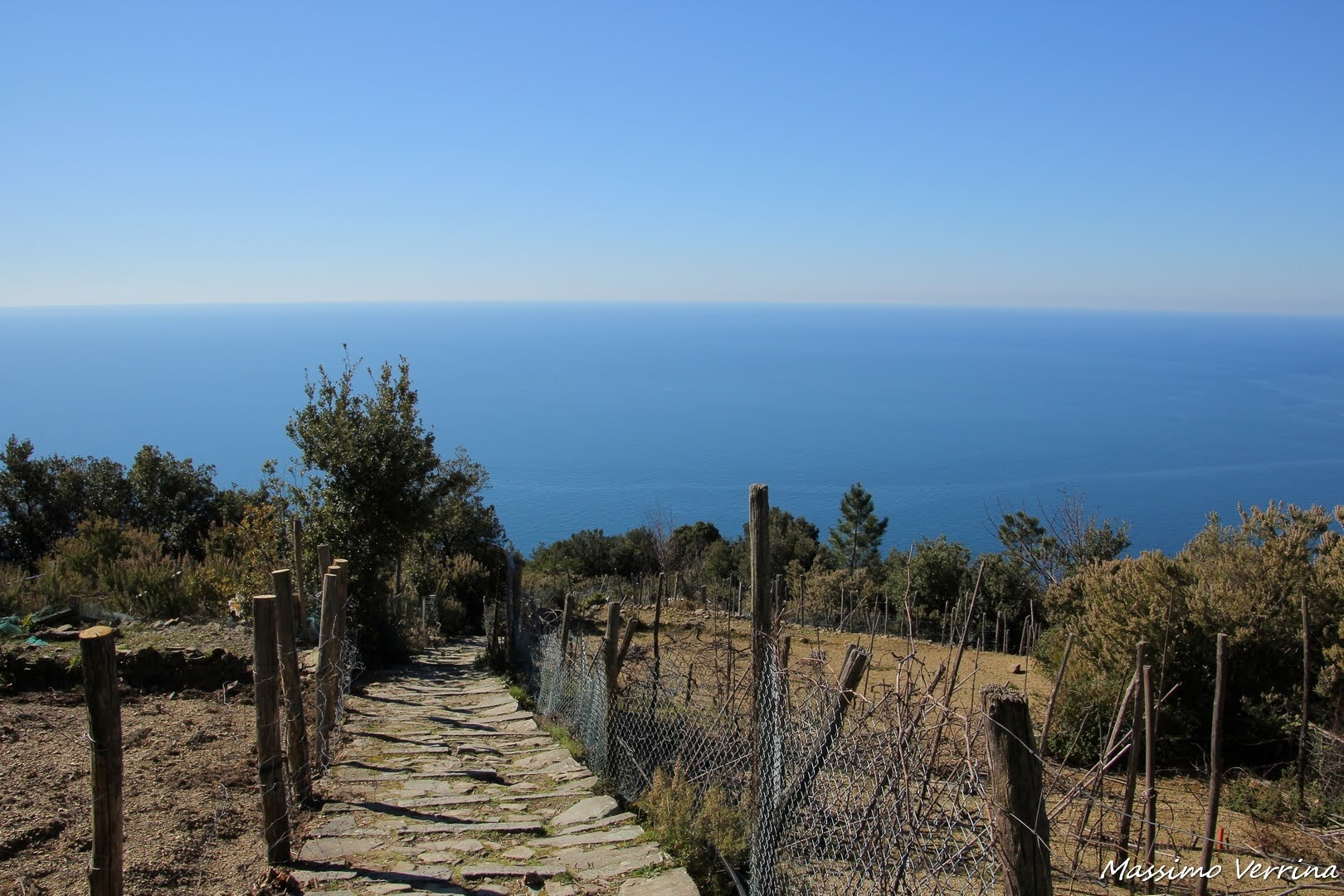 Da questo punto in avanti il sentiero diventa sempre più ripido fino a precipitare in mare con una discesa da brividi. In questo tratto siamo poco sopra l’inizio della scalinata grande, accanto a noi vigneti e vegetazione mediterranea ricca di profumi…