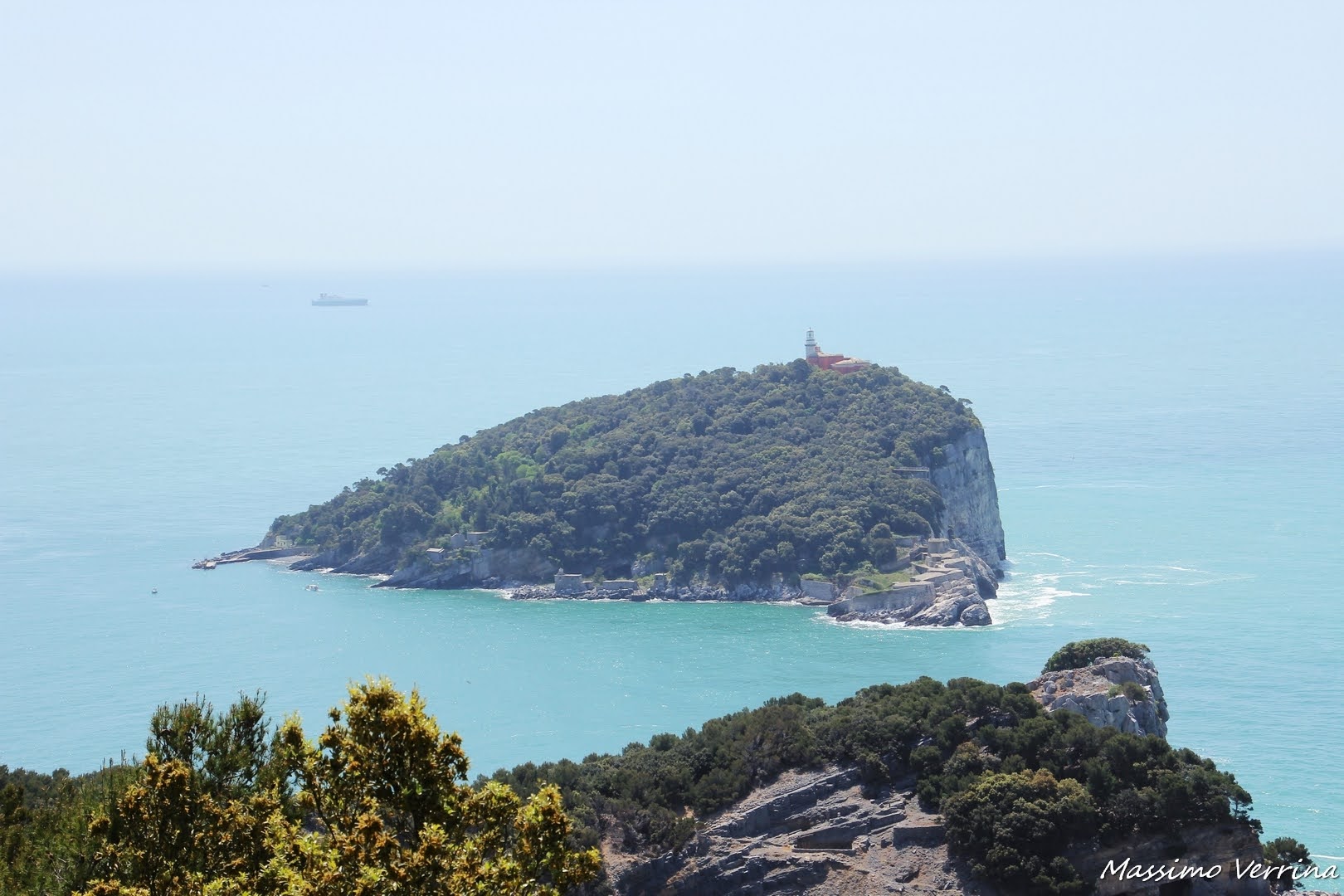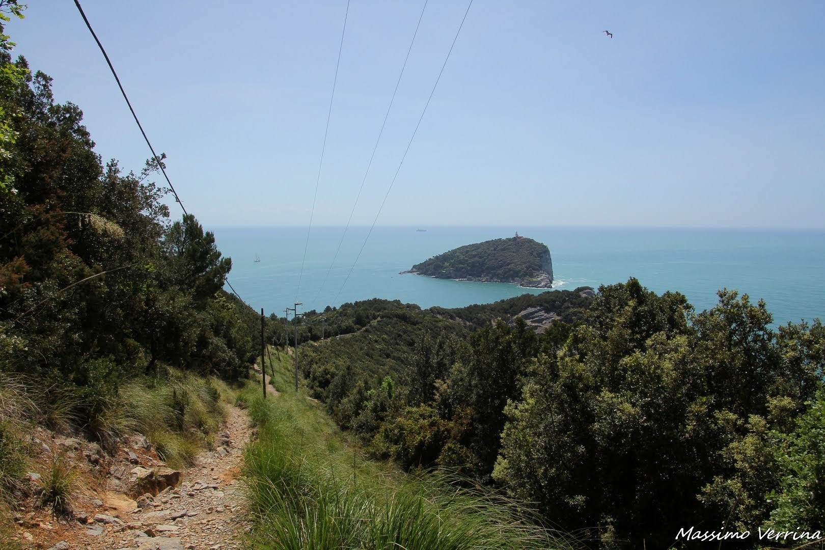 Poco più avanti incontro un gruppo di ragazze intente a mangiare, dopo averle salutate proseguo il mio cammino e raggiungo un punto panoramico dove poter ammirare dall’alto l’isola del Tino, posta proprio di fronte a questa, sul lato sud…