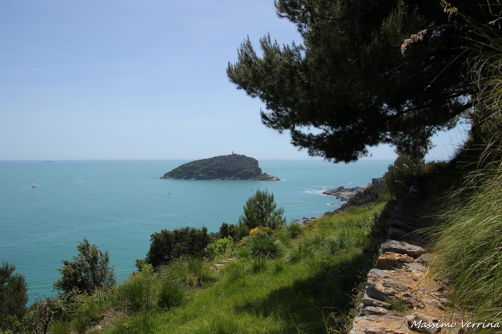 Mi volto un attimo per farvi osservare l’Isola del Tino che vista da questo punto è davvero spettacolare. Per chi arriva dalla parte opposta facendo il giro dell’isola si trova questo scenario di fronte lungo il suo cammino…