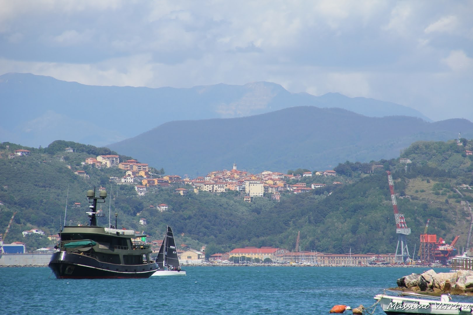 Yacht, vele, complessi industriali, borghi e montagne, in questo scatto ho racchiuso tutta la Liguria, non manca proprio nulla, potrebbe essere un riassunto di tutte le cose che potete fare e vedere da queste parti, ma non solo, anche sul resto delle 2 Riviere, entrambe molto belle….