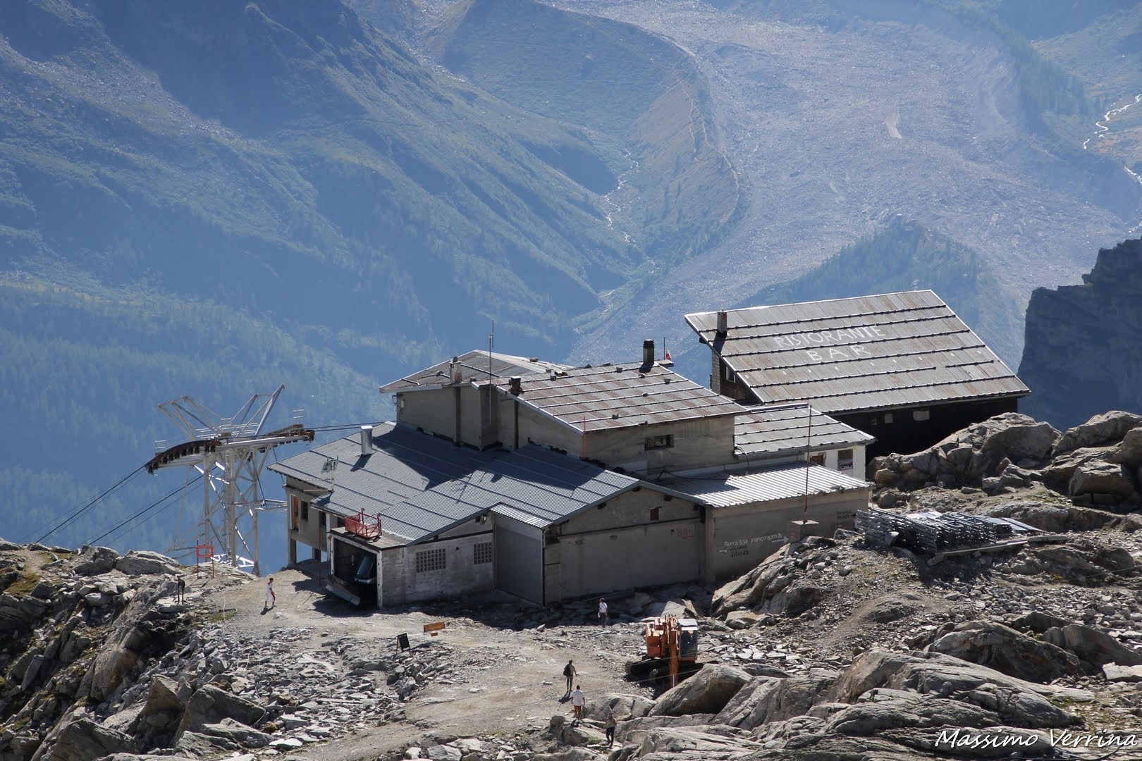 Dall’alto tutto ci appare diverso, lo stesso paesaggio dipinto di grigio, con quei colori cancellati dai raggi del controsole, testimonia la realtà delle ultime stagioni estive, con ghiacciai in ritirata e rocce che sembrano sbriciolarsi come vecchi castelli di sabbia coperti dal mare…