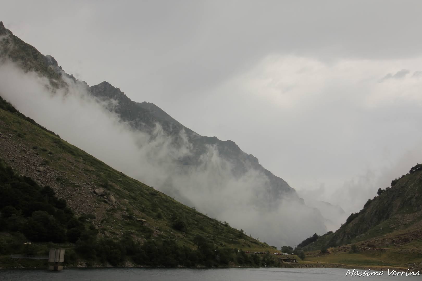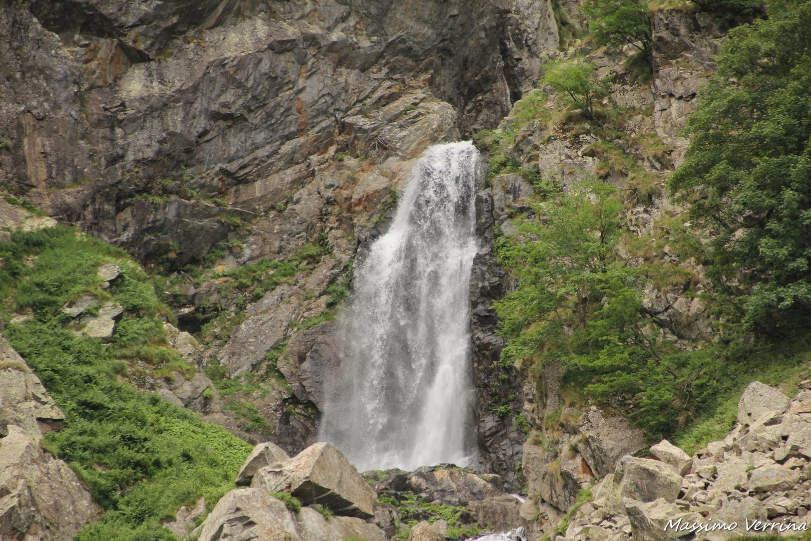 Alle mie spalle cascate rigogliose scendevano dal Lago Chiotas, un bacino artificiale che incontreremo in questa escursione. Il clima nonostante la pioggia non era fresco, per la quota si stava bene, ma di solito durante i rovesci a quelle altitudini il fresco si fa sentire…
