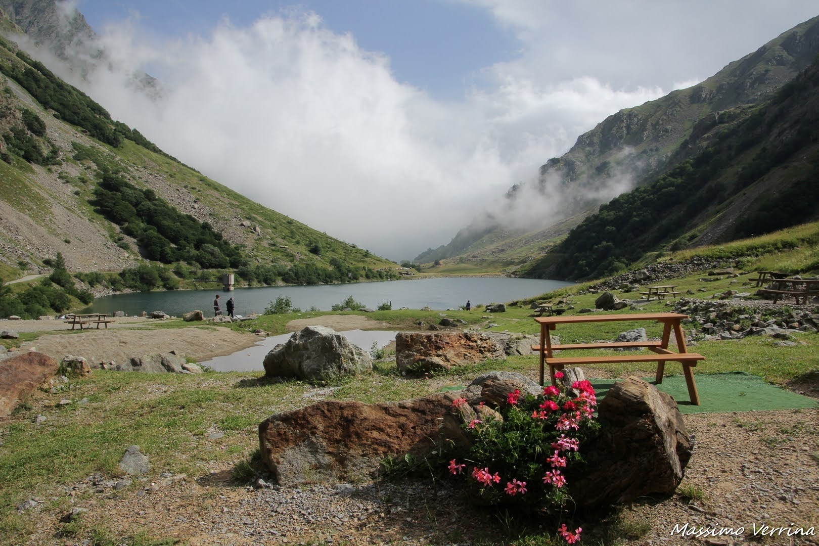 Come potete notare ci sono anche molte panche per fare dei pic nic. Lo sfondo nebbioso regalava contrasti interessanti, e i fiori in primo piano davano quel tocco di colore che non manca mai nelle mie escursioni montane, da vero amante della natura…
