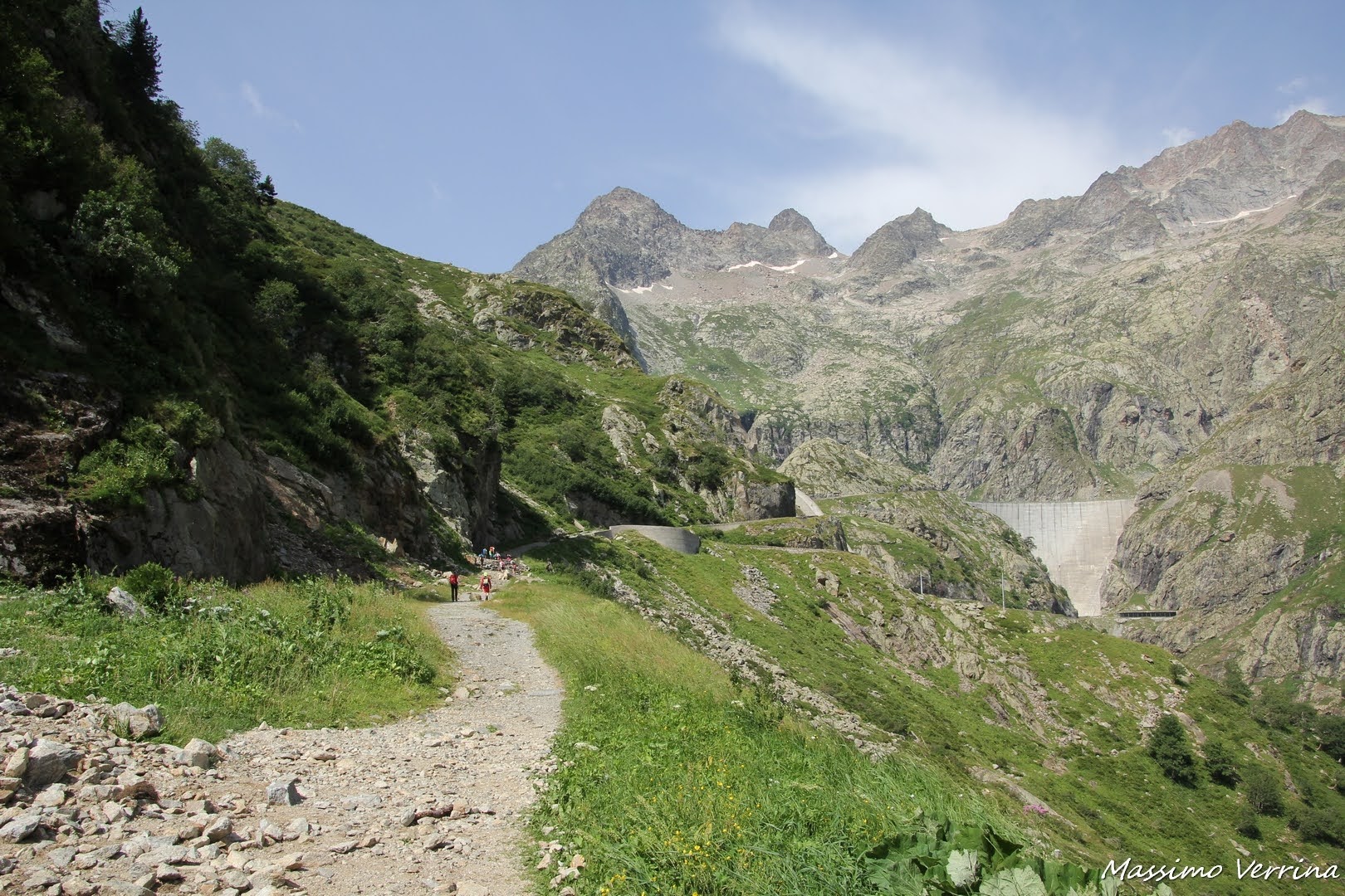 Qua il sentiero si unisce con l’altro facendosi ampio e meno faticoso, diciamo che questo tratto permette di far riposare un po’ le gambe dopo la ripida salita di prima. Ci stiamo dirigendo verso la grande diga…