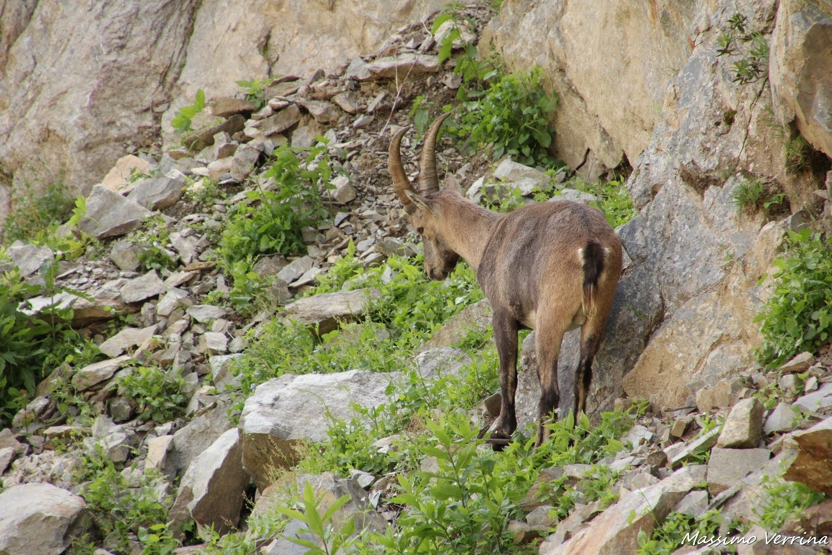Lo seguo col teleobiettivo mentre si arrampica su uno scosceso crinale, con la coda dell’occhio sembrava controllare il flusso dei turisti sulla strada, cercando di capire quando poteva di nuovo scendere senza essere disturbato. Poverino, in fondo quello era il suo ambiente e in quella giornata c’erano fin troppi ospiti per i suoi gusti…