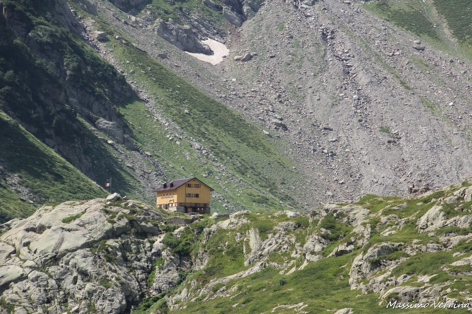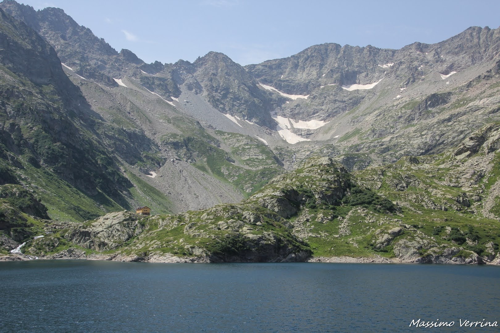 Eccoci arrivati sulla sponda sud del grande Lago Chiotas, il sentiero la percorre tutta, fino ad arrivare al Rifugio Genova che già si scorge in lontananza. Il vento aumentava sempre più, a tratti si doveva camminare piegati per non cadere a terra…