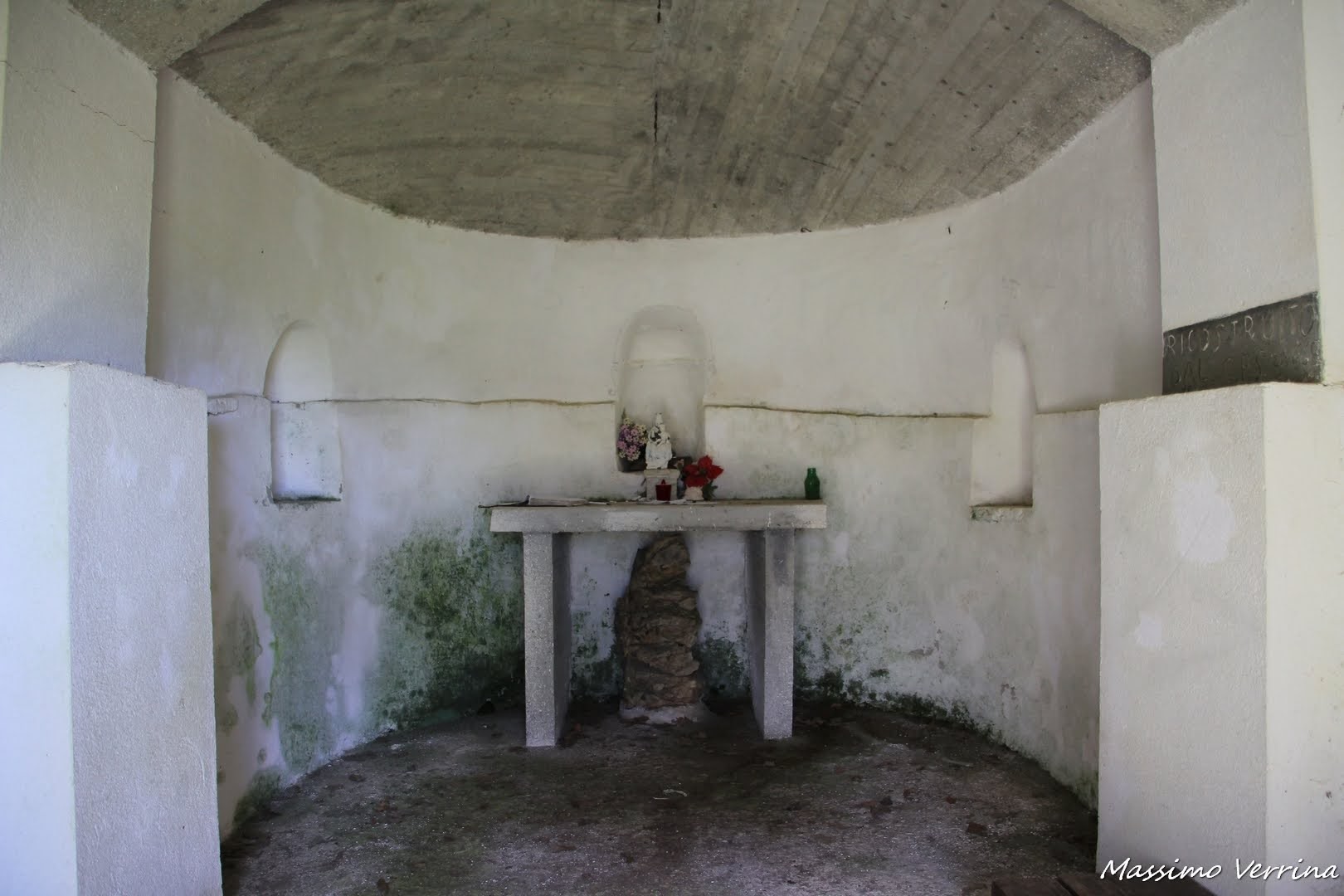 Vediamo da vicino questa piccolissima Cappelletta, ecco come si presenta dall’esterno. Da qua partono e arrivano altri sentieri che s’incrociano con l’alta via. Il silenzio qua è rotto solo dal canto degli uccellini e dal mormorare delle fronde mosse dal vento…