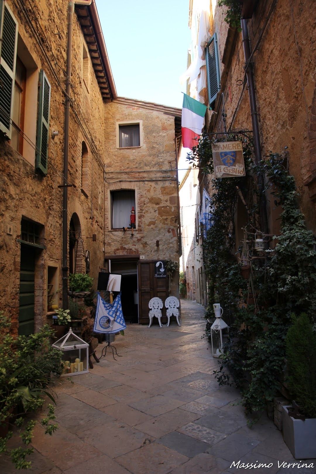 In quest’angolo del borgo l’atmosfera della terra toscana prende forma e la si vede in tutte le sue espressioni. Su un davanzale ecco spuntare un simpatico pinocchio, in onore di Collodi, altro borgo toscano di grande bellezza. E poi quelle insegne di hotel, così armoniosamente inserite nel contesto del colore del borgo, tanto da nascondersi ad una vista frettolosa….
