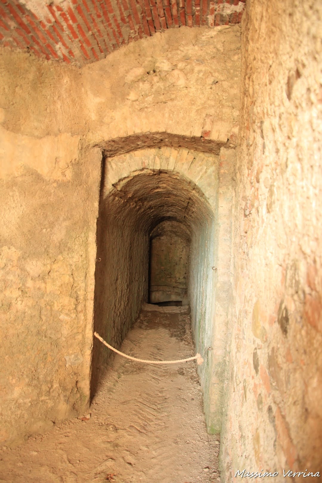 Ora vi porto dentro ad uno di quei camminamenti coperti che avete visto da fuori, questo è solo un piccolo tratto per farvi notare come si camminava all’epoca per spostarsi da una parte all’altra del forte. Come vedete lo spazio era molto angusto, in alcuni punti bisognava camminare accucciati per non battere la testa….