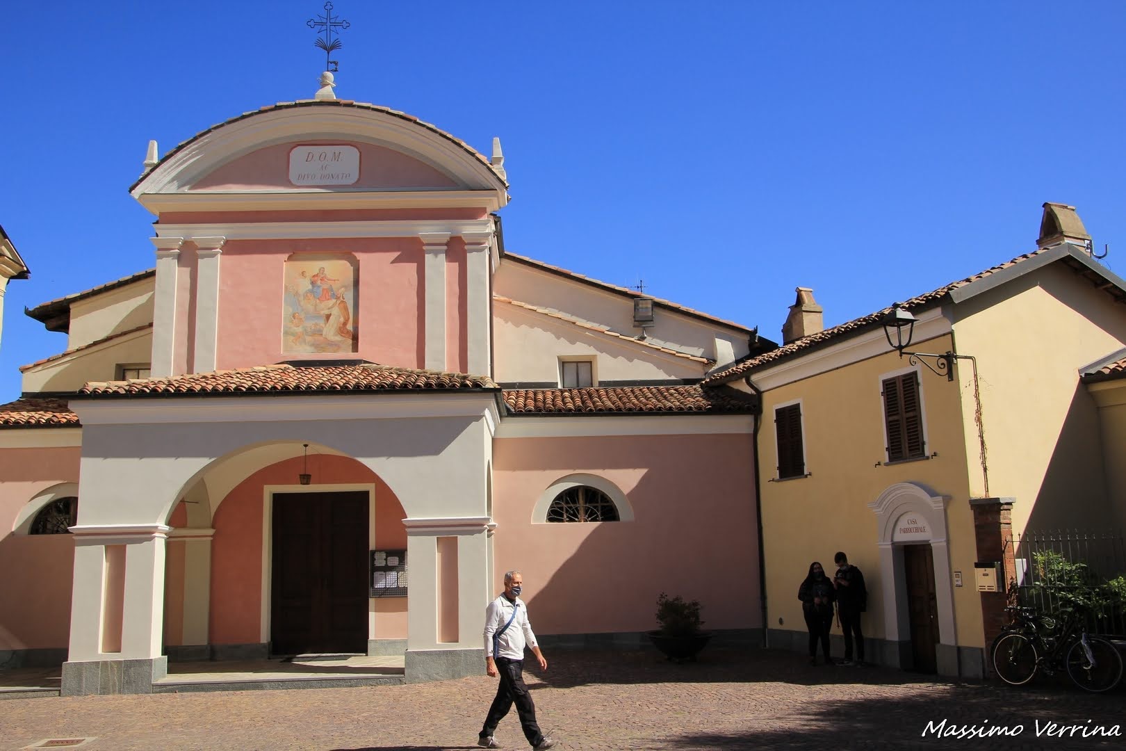 Il punto dove ci troviamo rappresenta il centro del borgo, tutto attorno le varie vie convergono in questo punto, e portano verso i lati esterni del paese. Ora vi faccio ammirare la facciata di questa chiesa…