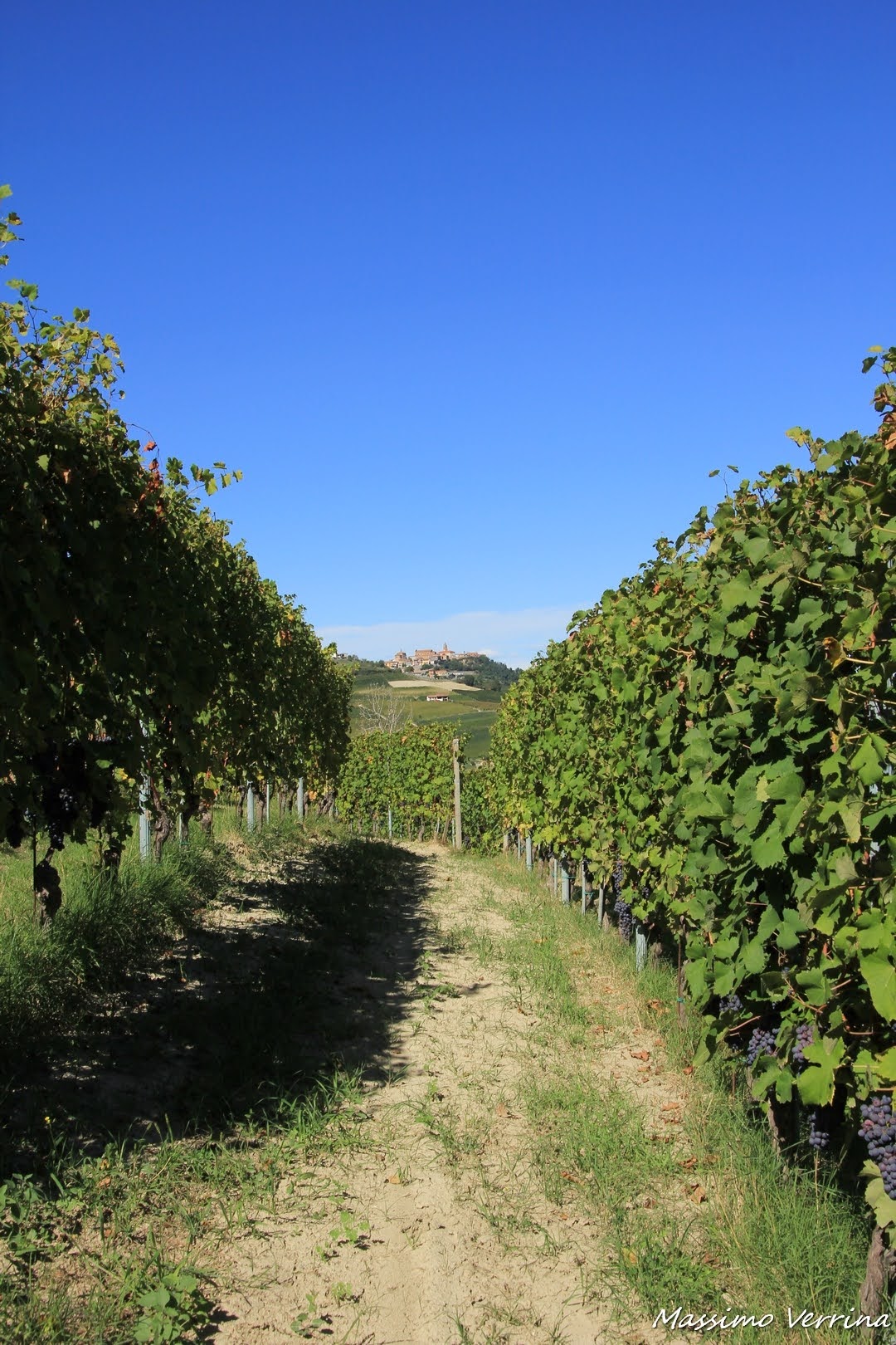Mi soffermo tra filari ricchi d’uva, il terreno caldo dal giorno rilascia aromi di terra, dalle vigne il profumo dell’uva mi colma l’olfatto, regalandomi attimi di puro relax in quel viaggio fra le colline delle Langhe…