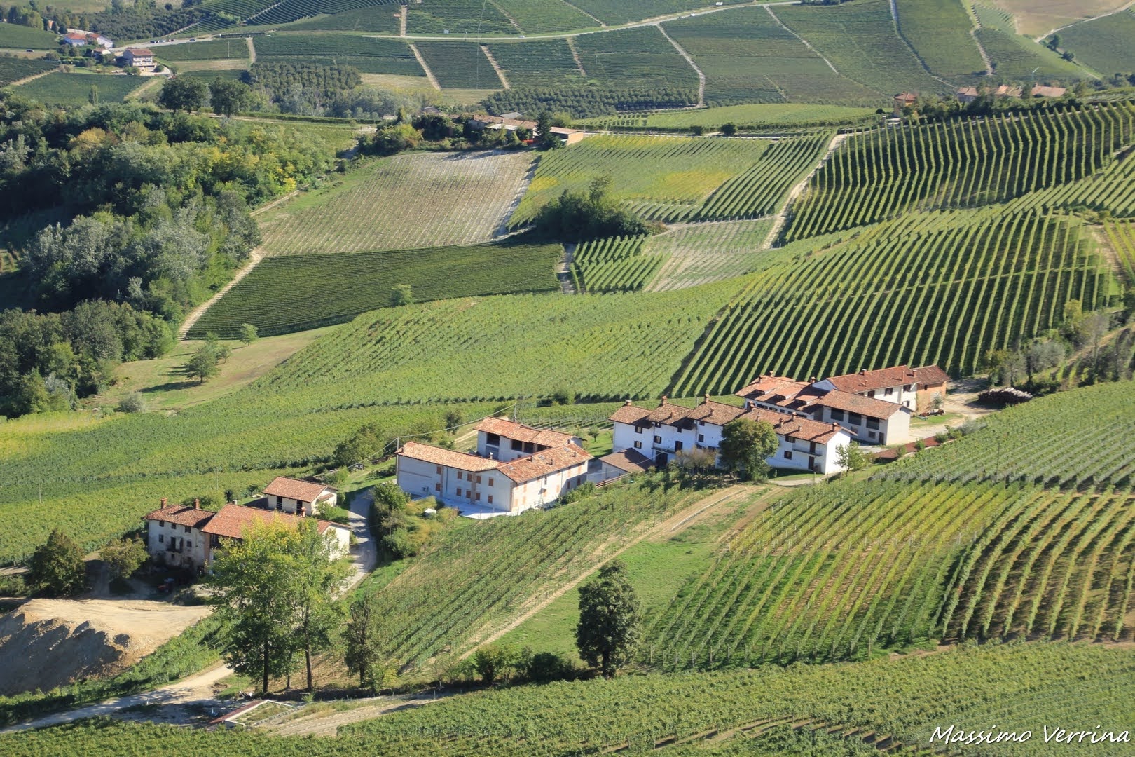 bello questo “volo” nel cuore delle Langhe tra le colline pettinate a vigna.