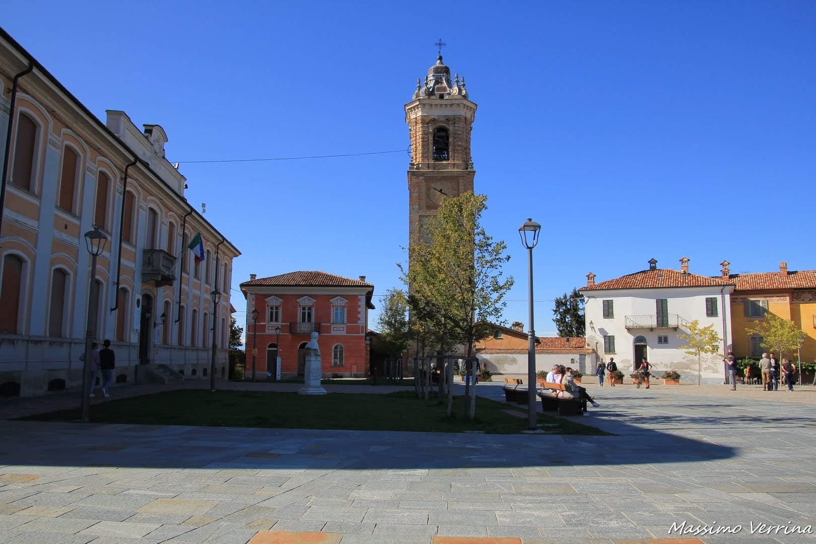 Nel prossimo scatto torniamo a vedere la piazza vastissima dalla quale ho scattato le foto che avete appena visto. Ecco la Torre campanaria vista da una nuova prospettiva, con quel fazzoletto verde davanti che ne impreziosisce ulteriormente la sua magnificenza…