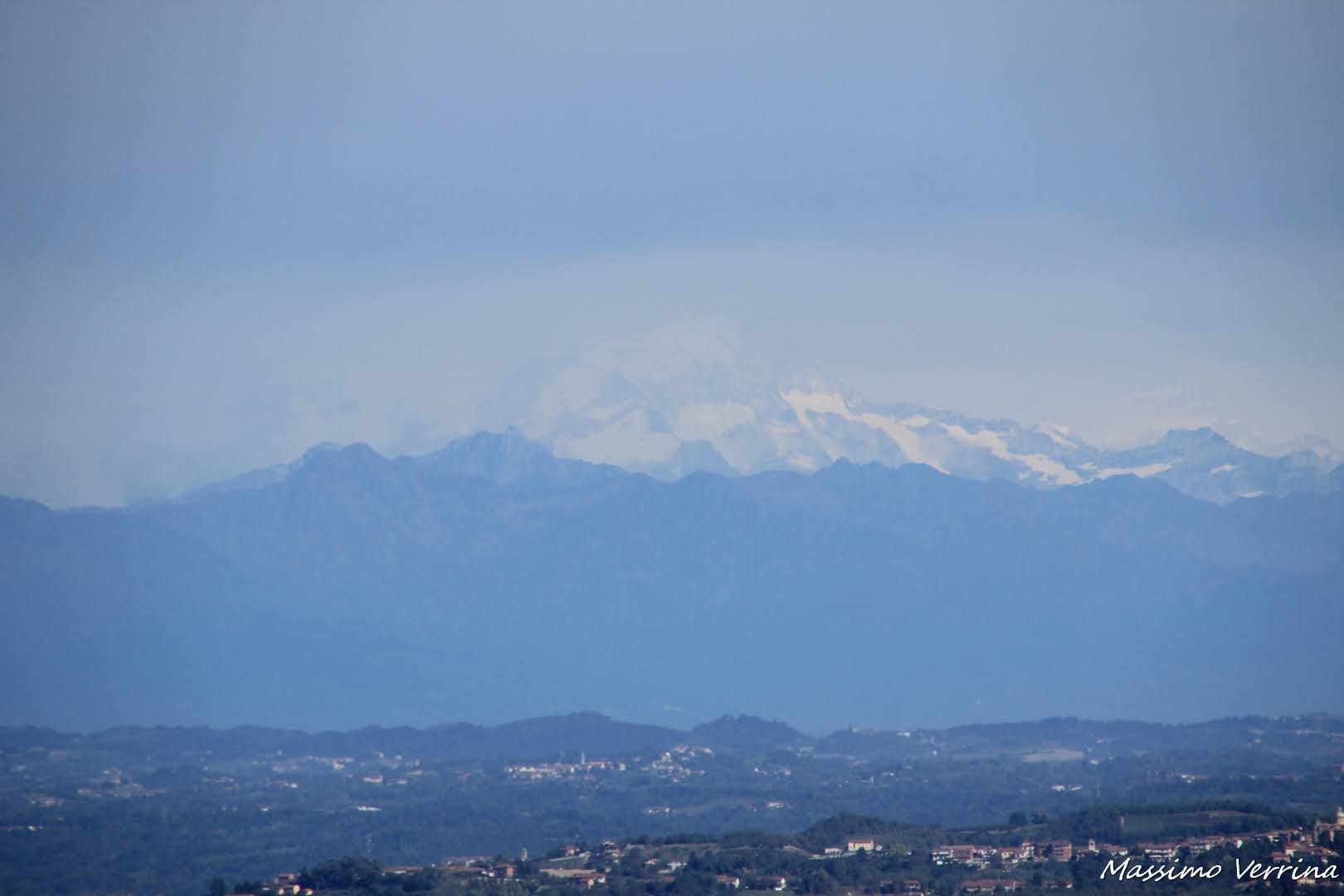Col potentissimo teleobiettivo ecco tra la foschia densa dovuta alla grandissima distanza le Alpi, con sua maestà il Monte Rosa, innevato per via dell’altitudine, sebbene fossimo solo a settembre, ma verso i 4000 la neve è presente tutto l’anno, anche se i ghiacciai come abbiamo visto si sono ridotti di moltissimo….