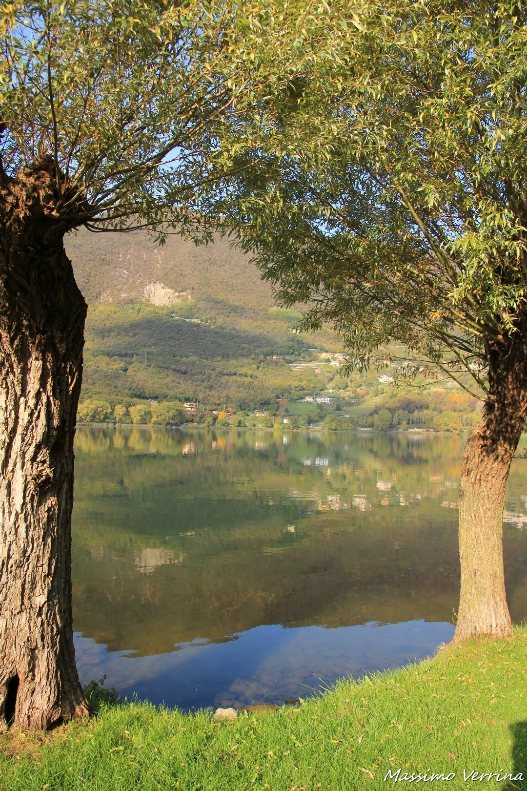 Continuo a camminare, cerco inquadrature nuove, ed ecco due alberi pronti a regalarmi qualcosa di particolare. La loro presenza incornicia un tratto del Lago davvero bello, dove le tinte pastello sembrano ammorbidire lo spettacolo del paesaggio…