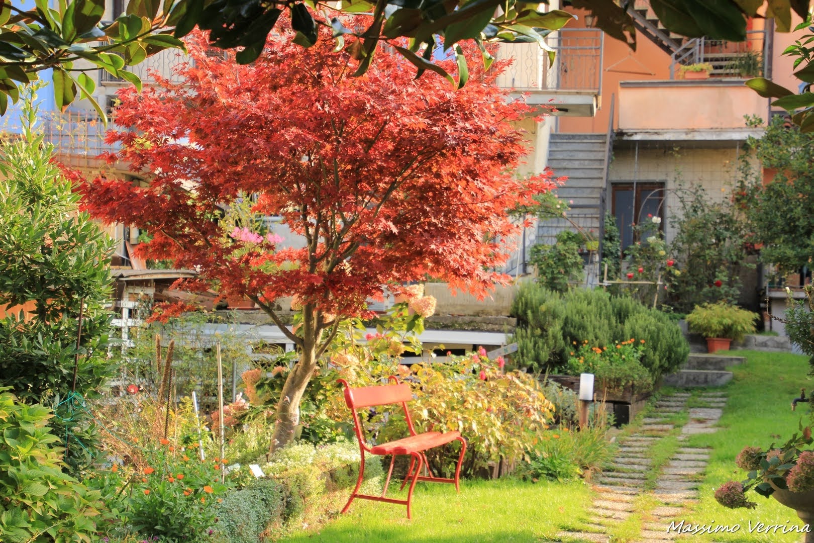 Passo accanto ad una Villetta privata, un albero di un rosso accesissimo cattura la mia attenzione, non posso fare a meno di soffermarmi per un veloce scatto. Da notare anche la panchina rossa, in questo periodo dell’anno questo è un quadretto unico nel suo genere…